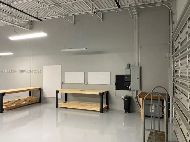 Industrial flex unit with 100% climate-controlled warehouse space. Unit 102 offers 2,615 square feet of highly functional industrial flex space featuring a modern open floor plan with a showroom-quality industrial finish. The unit includes 100% climate-controlled space, epoxy-coated concrete floors, LED lighting, impact windows, and a 12-foot roll-up door, creating an ideal environment for a variety of commercial uses. The layout includes a large warehouse area complemented by an integrated office section with kitchenette and two ADA-compliant restrooms. The space benefits from both a pedestrian entrance and warehouse access, allowing for flexible operational use. This versatile unit is suitable for distribution, e-commerce, marine services, contractors, showroom operations, creative studios, and light production uses. With approximately 8 assigned parking spaces and immediate access to major highways, the unit offers both convenience and functionality for owner-users or investors seeking well-located industrial flex space in central Broward County.