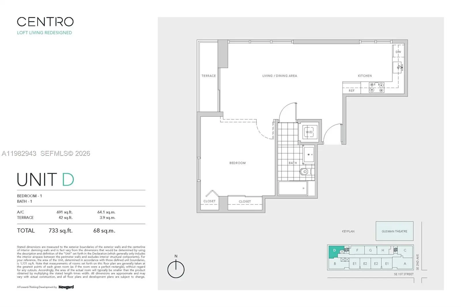 - 1 Bed, 1 Bath, 533 SqFt