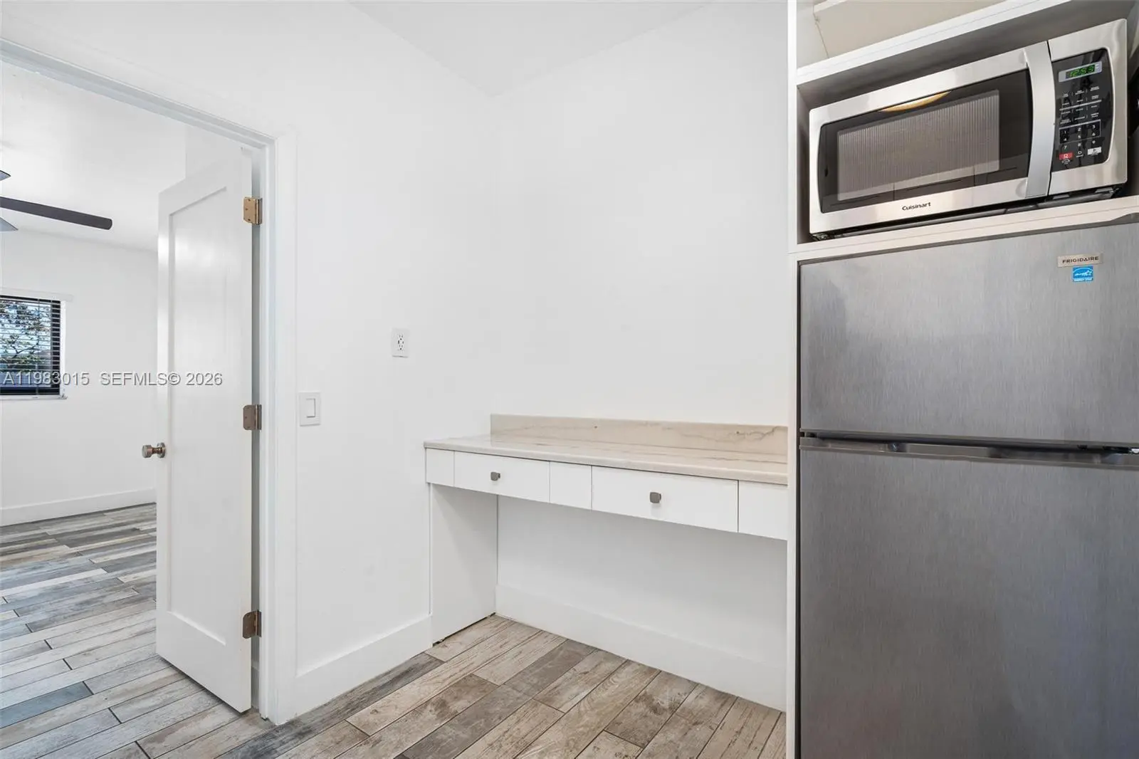 Enjoy this incredible fully updated studio/efficiency (1/1) with high ceilings and approximately 450 sq ft of living space. Features wood-look tile flooring, modern bathroom with subway tile shower, spacious closet, mini-split A/C, ceiling fan, and a kitchenette with refrigerator and microwave. Water, electricity, and Wi-Fi included. One assigned parking space inside the property. Prime location with easy access to Palmetto Expressway, I-95, and Miami International Airport, plus nearby shopping and dining. Only one tenant allowed. No pets. No washer and dryer. Move-in ready.