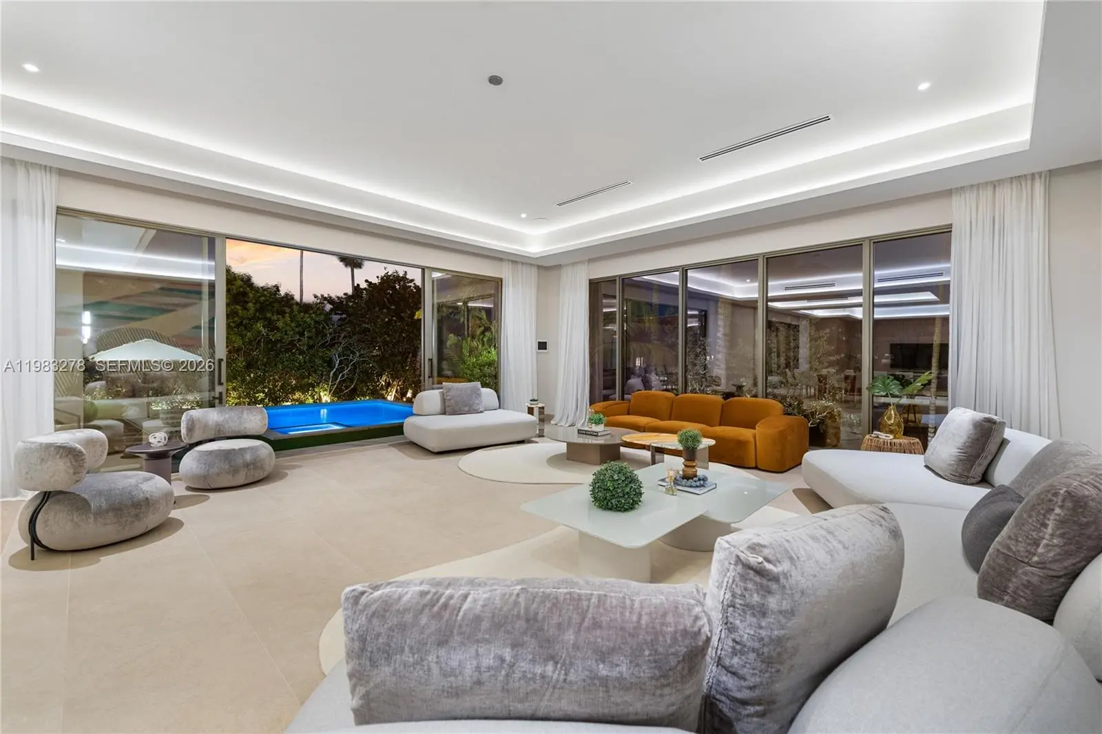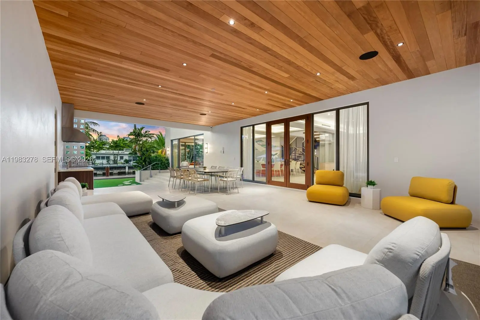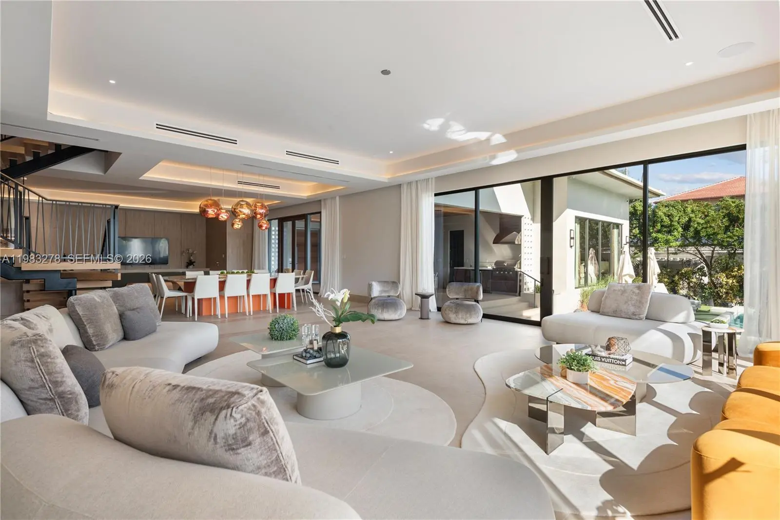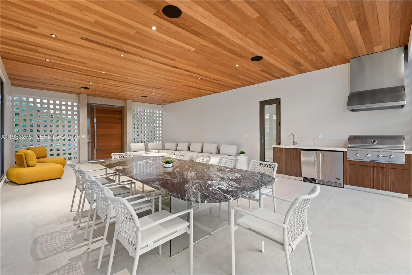 New construction, completed in 2023, offering the utmost in luxury and comfort. Boasting seven spacious bedroom suites and seven bathrooms, this home ensures ample space for family and guests. One of the seven bedrooms is located in a connected guest house, providing privacy and convenience. Inside, you'll find a beautifully designed living room, dining room, and family room, perfect for relaxing and entertaining. For outdoor dining and entertaining, there is an additional dining room. Each bedroom and the family room are equipped with televisions for your entertainment, and a laundry room. The outdoor amenities are truly exceptional, featuring a refreshing pool and relaxing hot tub, an outdoor kitchen for culinary delights, and a massive covered terrace with yet another outdoor kitchen.