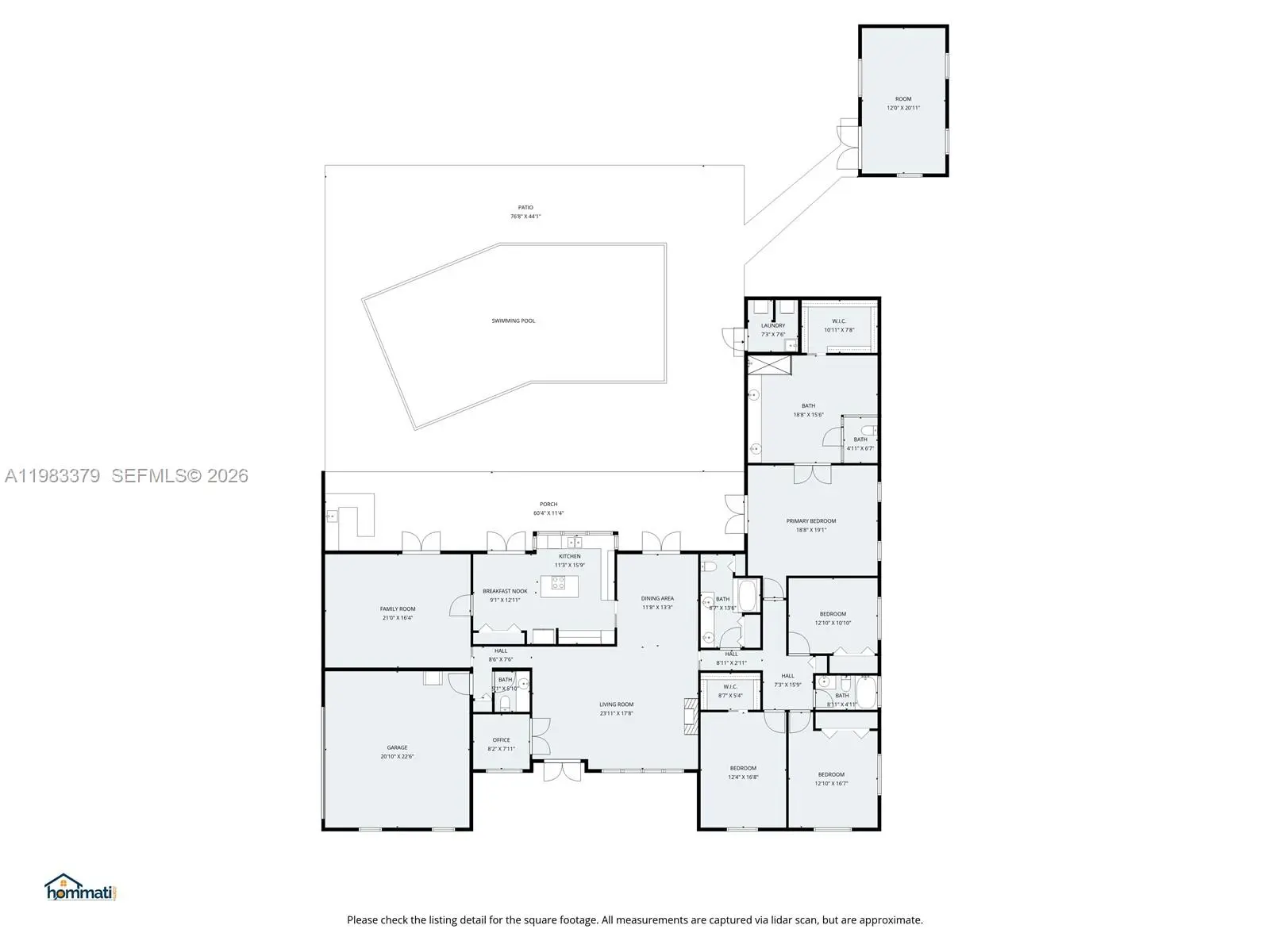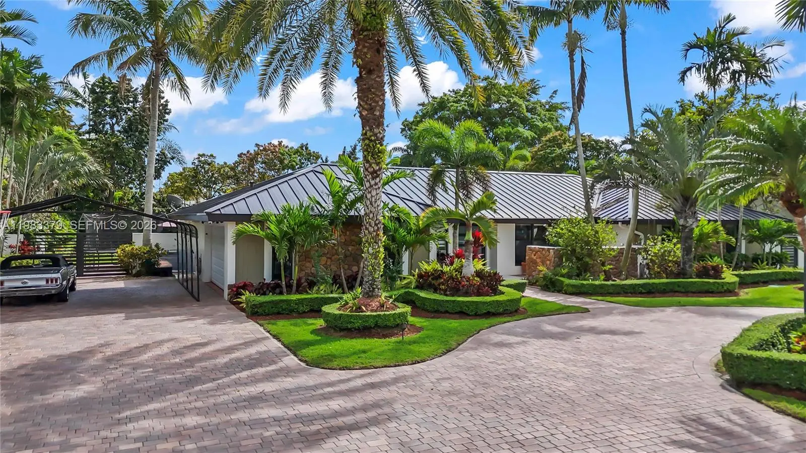 Absolutely stunning home situated on an expansive nearly 20,000 SF lot in desirable unincorporated Miami-Dade. This meticulously maintained property features a new roof, impact windows and doors, and an air conditioner less than one year old. The spacious interior offers a beautifully designed kitchen that overlooks the entire backyard, creating the perfect setting for both entertaining and everyday living. Step outside to your private tropical oasis featuring professionally designed landscaping, elegant lighting throughout the front and backyard, and a full sprinkler system to keep the grounds lush year-round. The backyard includes mature tropical fruit trees such as mango, mamey, and sapote, adding both beauty and the true South Florida lifestyle. The property also features attractive pavers in the front and back, a separate pool house, and a cabana bath for convenience. The large swimming pool is approximately 10 feet deep, ideal for accommodating a diving board or trampoline, making it perfect for recreation and entertaining. Located near top-rated A-rated schools from elementary through high school, this home also benefits from the lower tax base of unincorporated Miami-Dade.