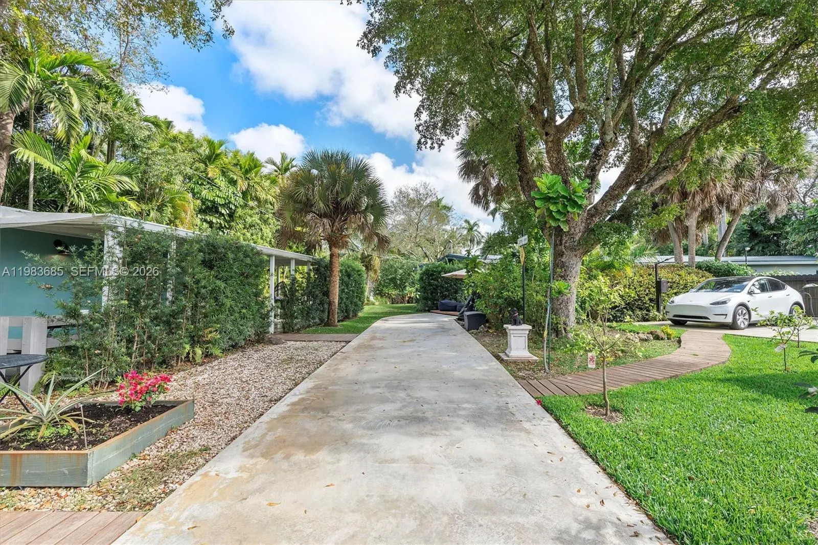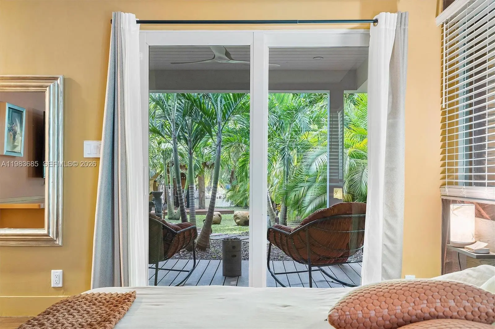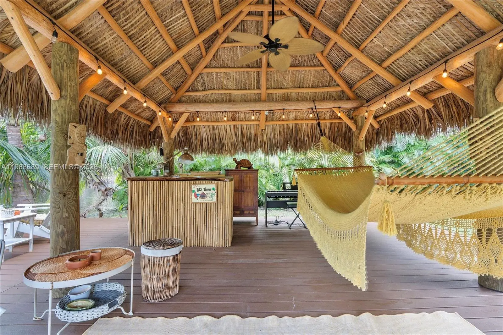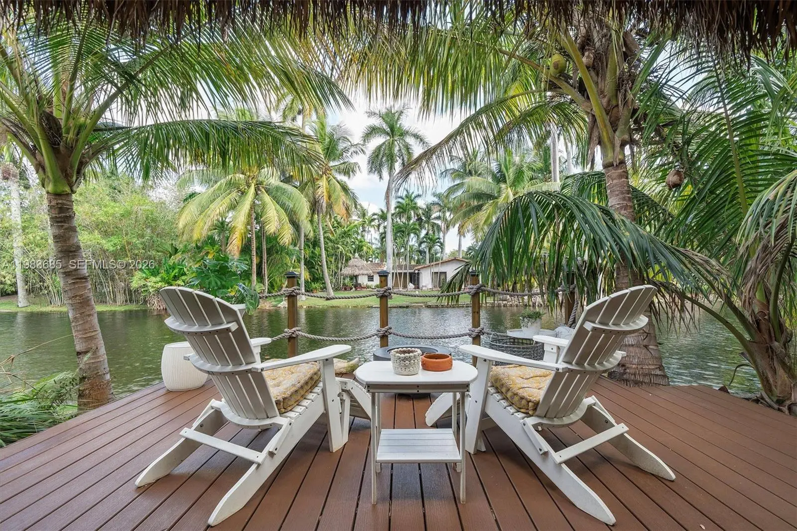 Step into a tropical waterfront sanctuary where every detail inspires serenity and connection with nature. This fully renovated property offers 4 bedrooms and 4.5 bathrooms total — 3 bedrooms and 3.5 baths in the main house, including 2 primary suites, plus a private guest studio with a full bath. An open living/dining area and designer kitchen create an inviting interior, while the detached studio provides flexible space for guests, work, or creativity. Outdoor living shines with a covered porch and tiki hut, complete with soaring ceilings, fans, and a bar. Lush landscaping attracts local birds, with room to add a pool. The property is fully fenced, with ample parking and two gated entrances for added privacy and ease. Just steps from MCDS. House Tour: https://my.matterport.com/show/?m=rnU7UCd4qjp&mls=1 Guest House Tour: https://my.matterport.com/show/?m=ZR5mojRr6ci&mls=1