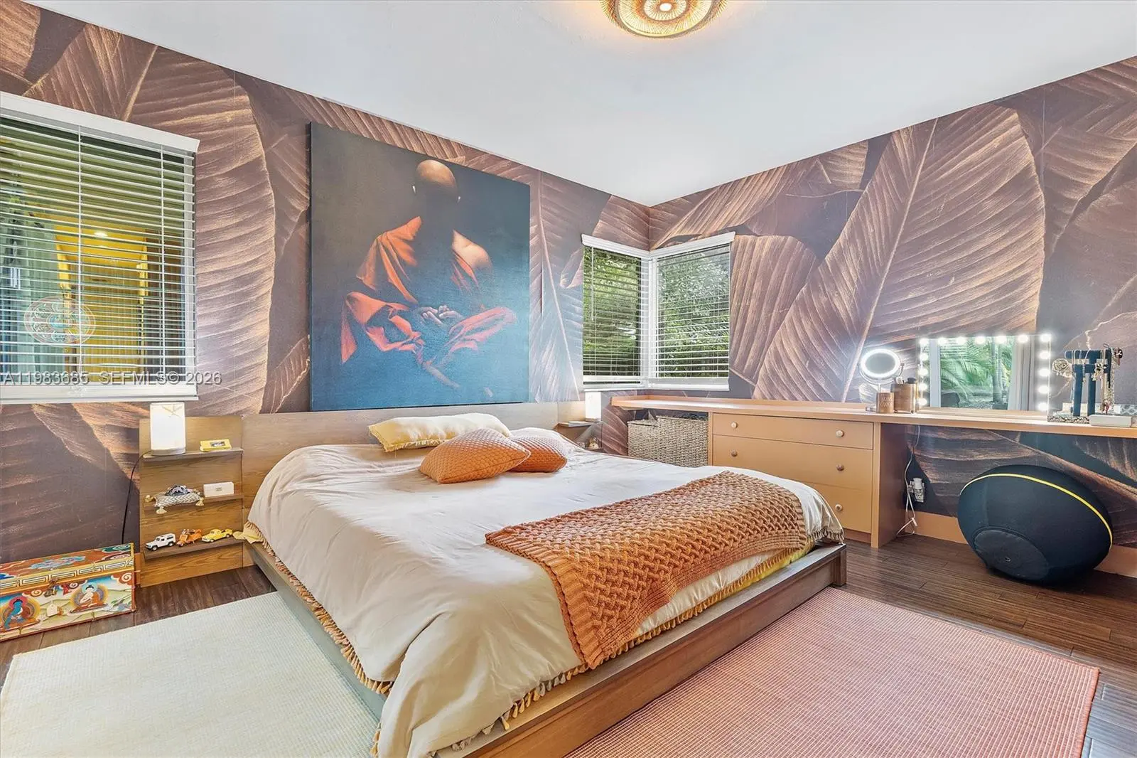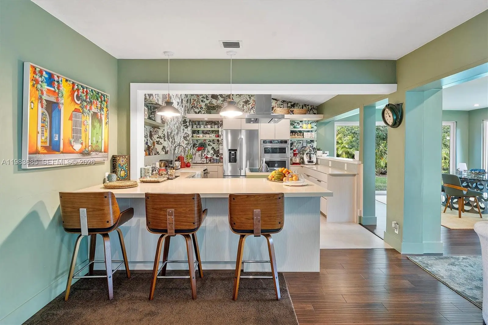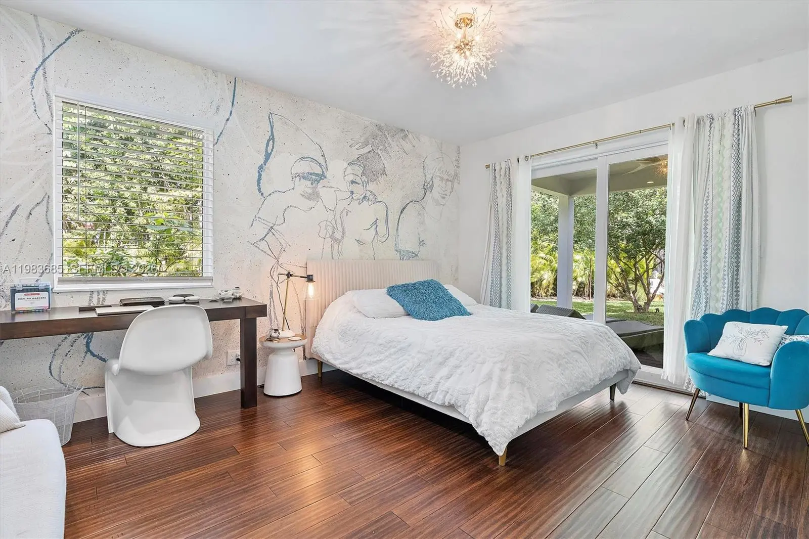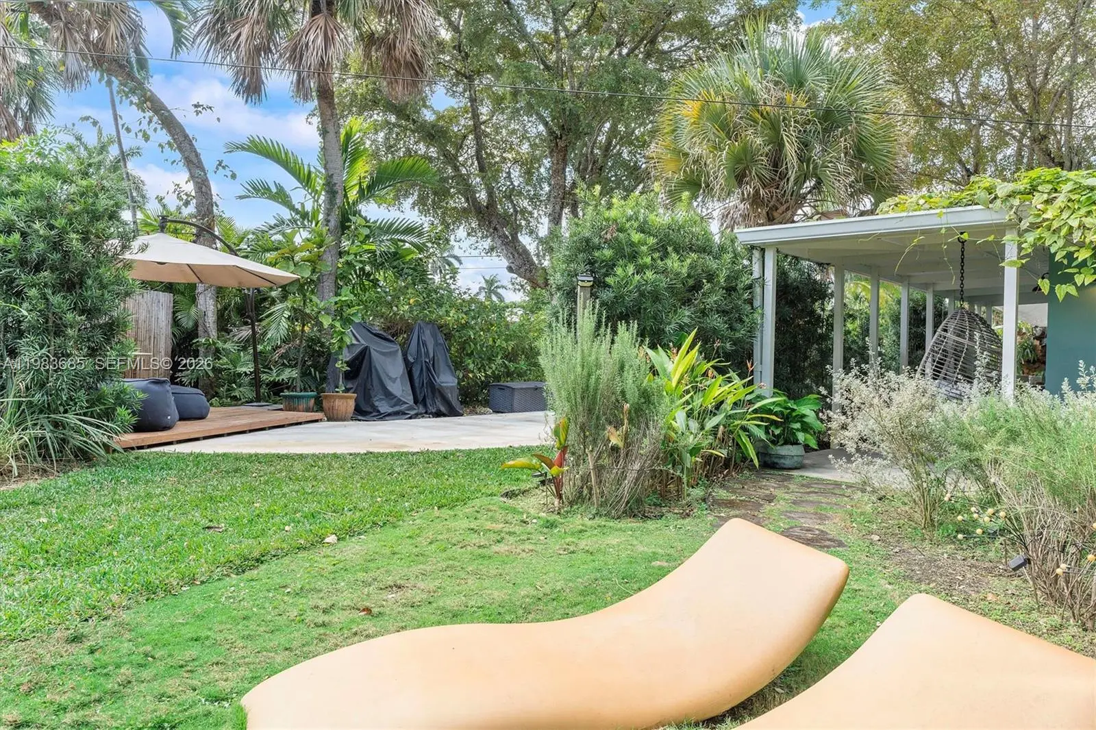 Step into a tropical waterfront sanctuary where every detail inspires serenity and connection with nature. This fully renovated property offers 4 bedrooms and 4.5 bathrooms total — 3 bedrooms and 3.5 baths in the main house, including 2 primary suites, plus a private guest studio with a full bath. An open living/dining area and designer kitchen create an inviting interior, while the detached studio provides flexible space for guests, work, or creativity. Outdoor living shines with a covered porch and tiki hut, complete with soaring ceilings, fans, and a bar. Lush landscaping attracts local birds, with room to add a pool. The property is fully fenced, with ample parking and two gated entrances for added privacy and ease. Just steps from MCDS. House Tour: https://my.matterport.com/show/?m=rnU7UCd4qjp&mls=1 Guest House Tour: https://my.matterport.com/show/?m=ZR5mojRr6ci&mls=1