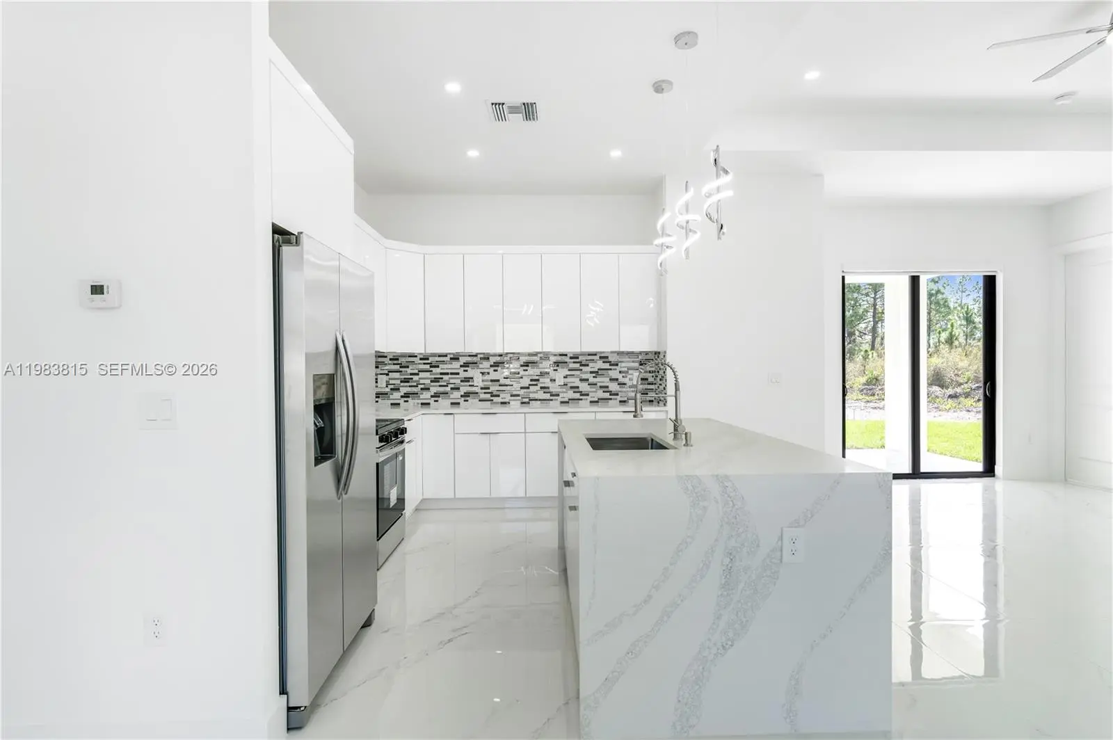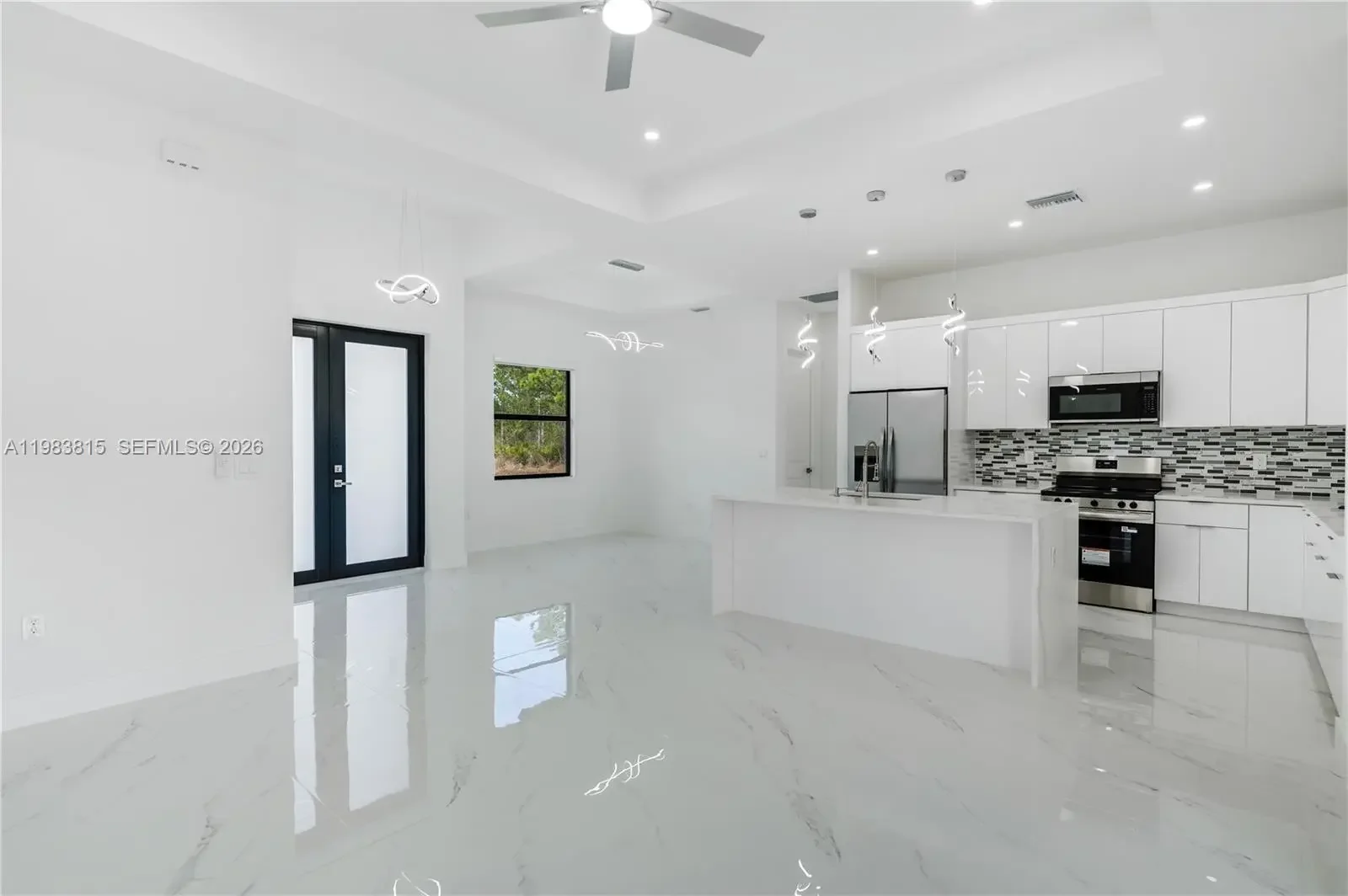 Move-in ready New construction home in fast-growing Lehigh Acres, Lee County! This 4 bedroom + 2 bath residence offers modern open concept living, high ceilings, impact-resistant windows & doors, and energy-efficient design, all built with craftsman-level finishes for quality and durability. The kitchen features custom tile backsplash, sleek countertops, and stainless steel appliances, perfect for cooking and entertaining. Enjoy a beautifully maintained lush green lawn with sprinkler system, plenty of yard space, and a generous driveway with extra parking for vehicles or RVs. Located in a community with abundant outdoor recreation, parks, walking & biking trails, you’re minutes from Veterans Park & Recreation Center, playgrounds, athletic fields, and scenic greenways. Golf lovers are close to Majestic and Westminster clubs, and nature enthusiasts will enjoy Harns Marsh and Hickey’s Creek preserves. Daily conveniences, local dining, cafés, and shopping are nearby on Lee Blvd and Homestead Rd. Lehigh Acres offers quick access to Fort Myers, the Caloosahatchee River, and Gulf Coast beaches including Fort Myers Beach, Sanibel & Captiva. This home delivers quality construction, modern design, and a prime location in Lee County, perfect for anyone searching for move-in ready, energy-efficient, new construction homes with impact windows.