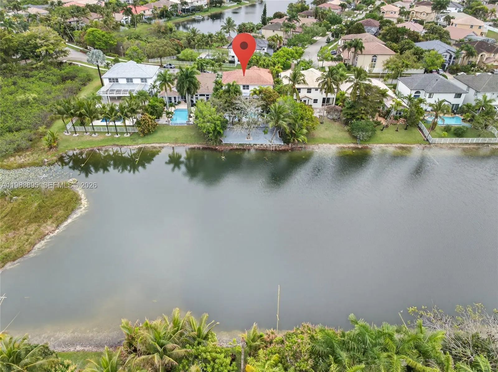 Introducing a beautifully appointed waterfront estate home with pool that blends timeless sophistication with modern refinement. This elegant 4-bedroom, 2.5-bath residence PLUS loft offers gracious living spaces accented by designer finishes and exceptional architectural detail. A highlight of the home is the private balcony from the upstairs bedroom, capturing sweeping lake views and enhancing its estate-like allure. The residence showcases inset marble flooring, custom lighting, upscale window treatments, and a series of tasteful upgrades throughout. The gourmet granite kitchen features premium cabinetry and a charming breakfast nook overlooking the home’s lush, tropically landscaped grounds. Outdoors, enjoy a serene lakeside setting with a covered terrace, salt-treated resort-style pool with advanced heat pump controlled by WIFI system. Perfectly positioned in a sought-after location, this refined estate sits moments from the Miramar Tennis Complex, excellent schools, parks, dining, and everyday conveniences—offering an exceptional lifestyle in one of the area’s most desirable communities.