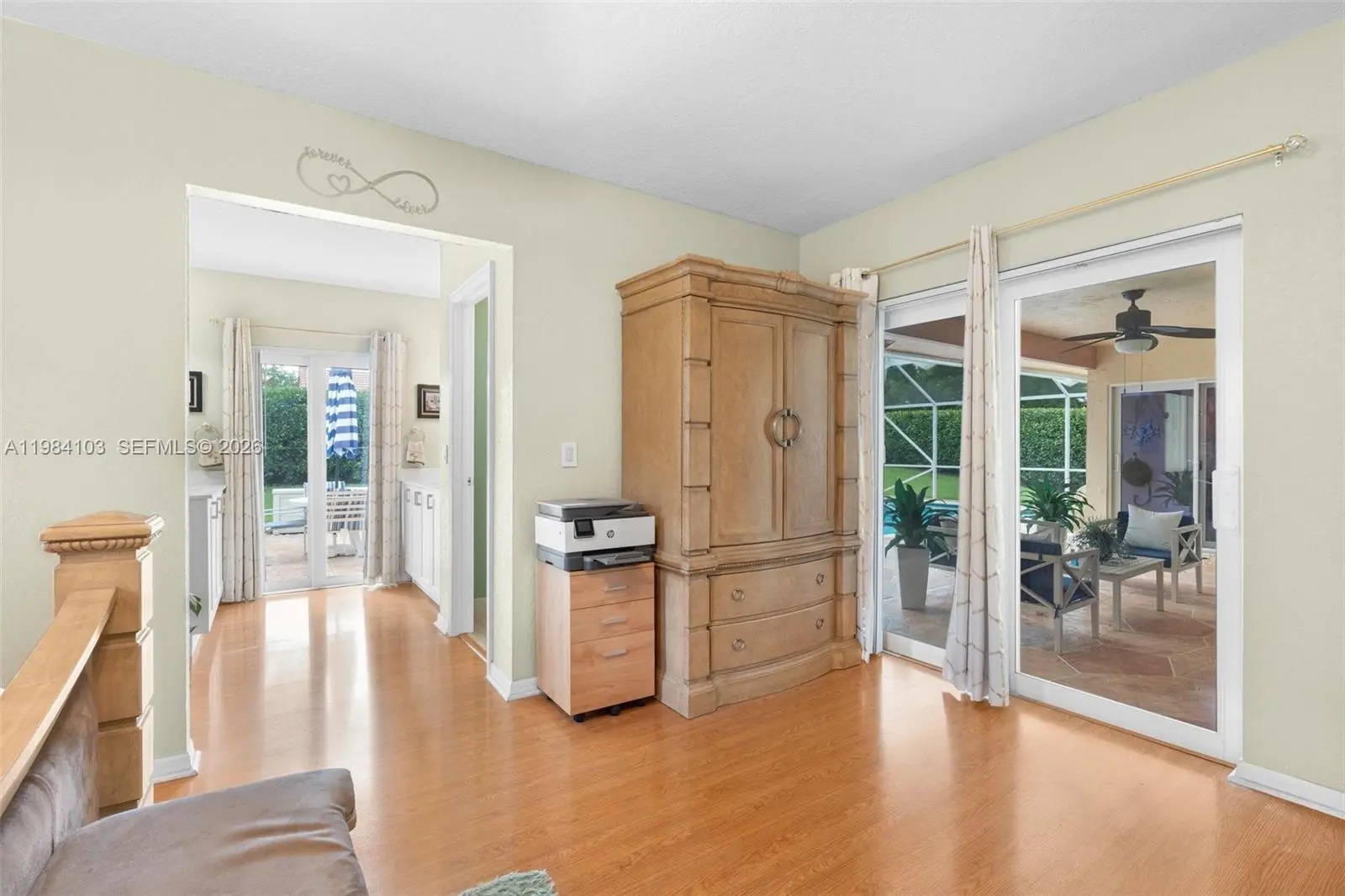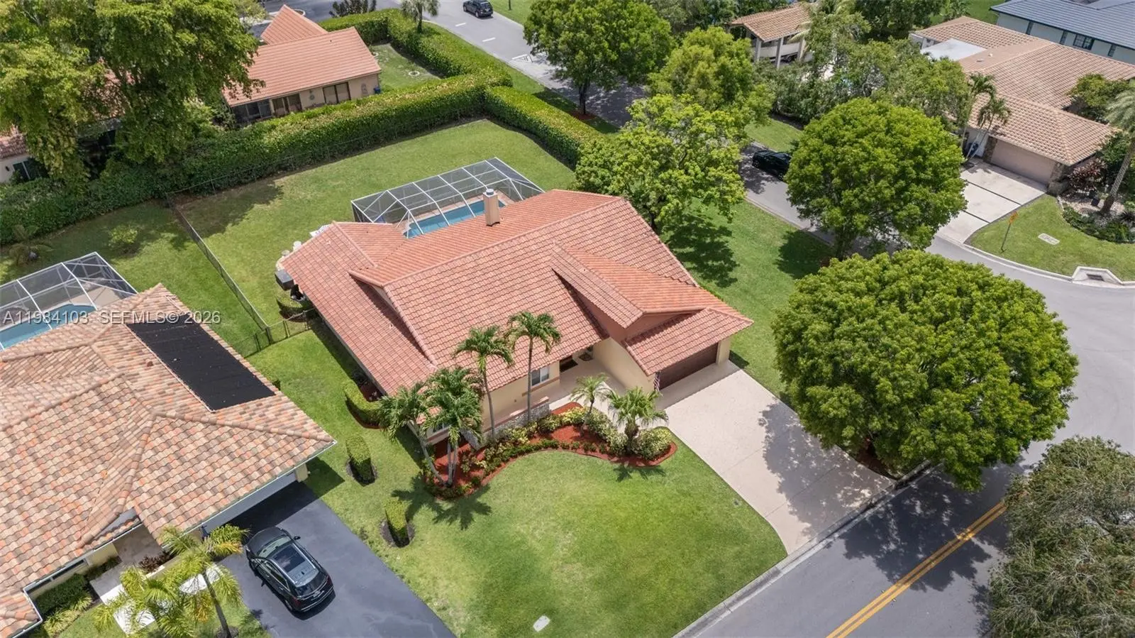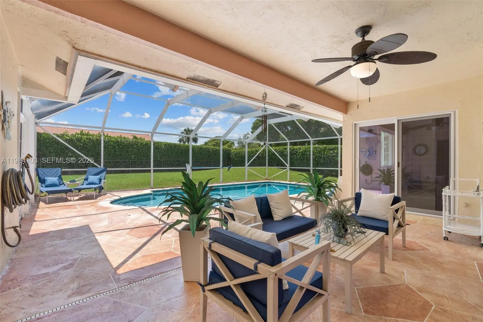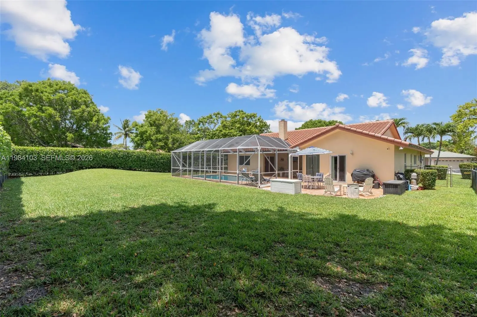 This beautifully maintained home, nestled in the highly desirable neighborhood of Maplewood, invites you to experience a blend of comfort and elegance. Spanning 2,415 square feet, this residence features a newer roof installed in 2024. The home is equipped with impact-resistant windows and doors, offering both safety and energy efficiency. Throughout the property, you’ll find exquisite custom closets that provide ample storage space, while a new air conditioning system ensures a cool, refreshing atmosphere even on the warmest days. At the heart of the home, the flexible floor plan offers various living options, showcasing an expansive primary suite. This bedroom includes a stunning bathroom, complete with stylish split vanities that add a touch of luxury. The main living areas are designed for seamless flow, connecting effortlessly to a spacious kitchen, making it perfect for gatherings and entertaining guests. Set on an impressive 14,800 square foot lot, the outdoor space is a true haven. It features a newly refinished screened-in pool, complemented by a beautifully designed deck and patio, creating an ideal setting for relaxation and outdoor enjoyment. With no HOA you have the freedom to personalize your space as you wish. Additionally, this prime location is conveniently situated near top-rated schools, vibrant shopping districts, tennis courts, fitness trails, and a charming playground, making it a perfect spot for families and active individuals alike.