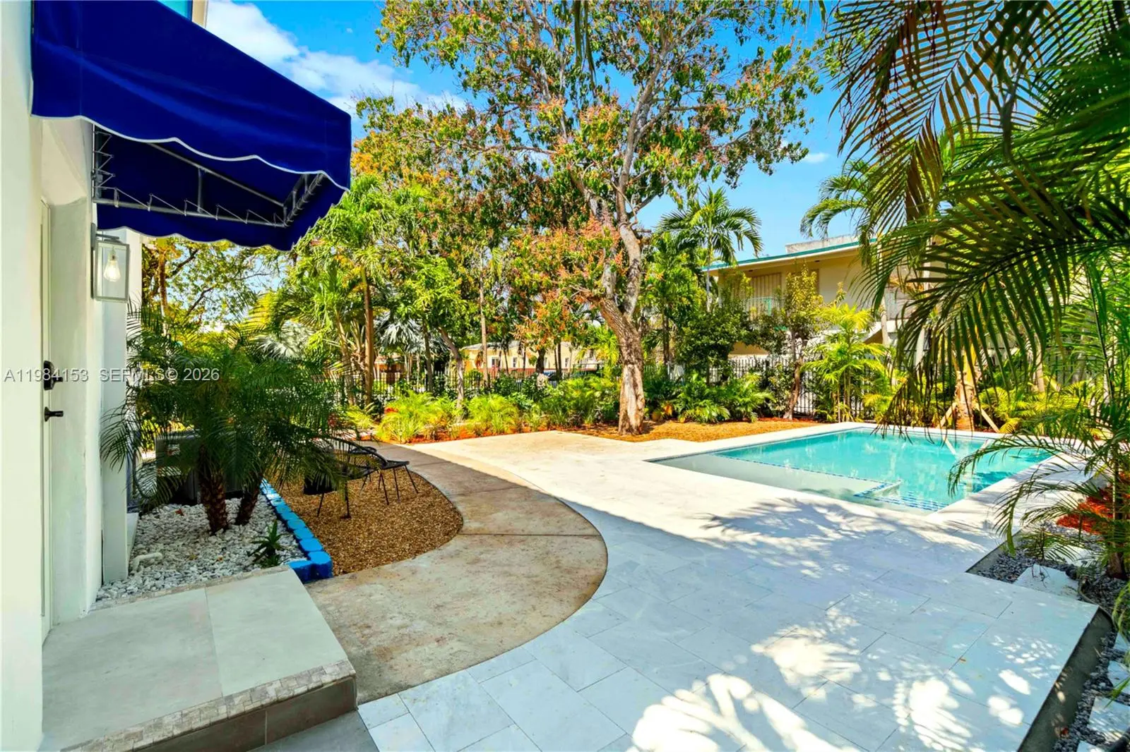 Where prime location meets refined comfort... Only 8 minutes from Brickell, this exceptional residence offers a rare blend of sophistication and serenity, nestled within a private, gated tropical oasis with lush landscaping and a private pool in the famous Little Havana quarter. Completely reimagined by an interior designer, this brand-new property showcases refined Mediterranean-inspired design, premium finishes, and expansive impact windows that bathe the interiors in natural light. Huge living area framed by two oversized panoramic windows and four spacious bedrooms: 3 on the main level and 1 upstairs, each with an en-suite bathroom and custom closets. A private first-floor suite with its own entrance serves as an ideal master retreat, while the upstairs suite with a dedicated office provides a peaceful escape. An oversized chef’s kitchen, complete with high-end appliances, flows seamlessly into a sophisticated dining area. A separate guest restroom adds convenience. 3 private on-site gated parking spaces provide a rare level of comfort. Perfect for executives and families seeking to enjoy the vibrant city lifestyle while retreating to a quiet tropical oasis. 8 minutes to Brickell by car, 12 minutes by bike, and just a 3-minute walk to famous Calle Ocho, with its renowned restaurants, bars, and shops. Pool maintenance and garden services are included. Move-in ready. Brand-new home and furniture! First rental!
