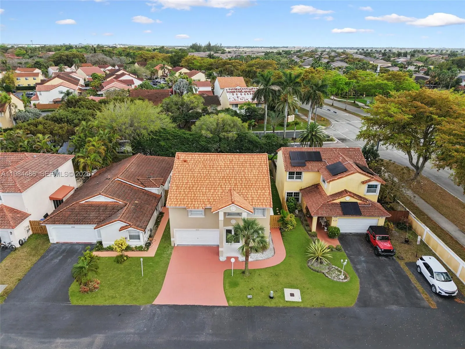 Welcome to this completely remodeled 4-bedroom, 2.5-bath residence in the gated community of Vizcaya at The Hammocks, where modern design meets everyday comfort. This spacious home features a bright and open floor plan, perfect for family living and entertaining, with designer finishes throughout. The stunning kitchen is equipped with quartz countertops, custom cabinetry, and state-of-the-art appliances. Porcelain floors run throughout the home, complemented by recessed lighting, new window treatments, and a dedicated laundry room. Recent upgrades include a brand-new roof, new A/C unit, accordion shutters, and new fencing, providing both style and long-term value. Upstairs, the expansive primary suite offers a custom walk-in closet, a versatile sitting area or den, and a beautifully finished bath with top-of-the-line fixtures. Secondary bedrooms are equally well appointed with custom closets and blackout shades; **over $180,000.00 on upgrades!** Hammocks community, with access to a community pool, fitness center, tennis courts, and miles of scenic walking and biking trails surrounding the lakes. Schools, shopping, dining within easy reach.
