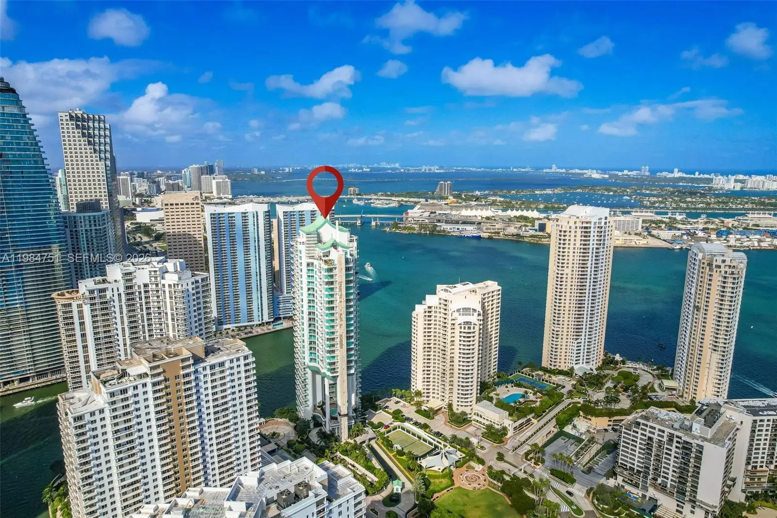 Experience elevated living at Unit 2904 in Asia Brickell Key, a premier high-rise residence showcasing sweeping views of Biscayne Bay and the Miami skyline. This 3-bedroom + den, 4.5-bath home offers 2,631 sq ft of refined interiors, complete with a private elevator, soaring ceilings, and floor-to-ceiling windows. The chef’s kitchen features top-of-the-line appliances and sleek contemporary finishes. Expansive terraces provide stunning sunrise and sunset vistas. Residents of Asia enjoy exclusive resort-style amenities, including a pool, spa, fitness center, concierge services, valet, and 24-hour security—all within a private island setting just moments from Brickell’s vibrant lifestyle.