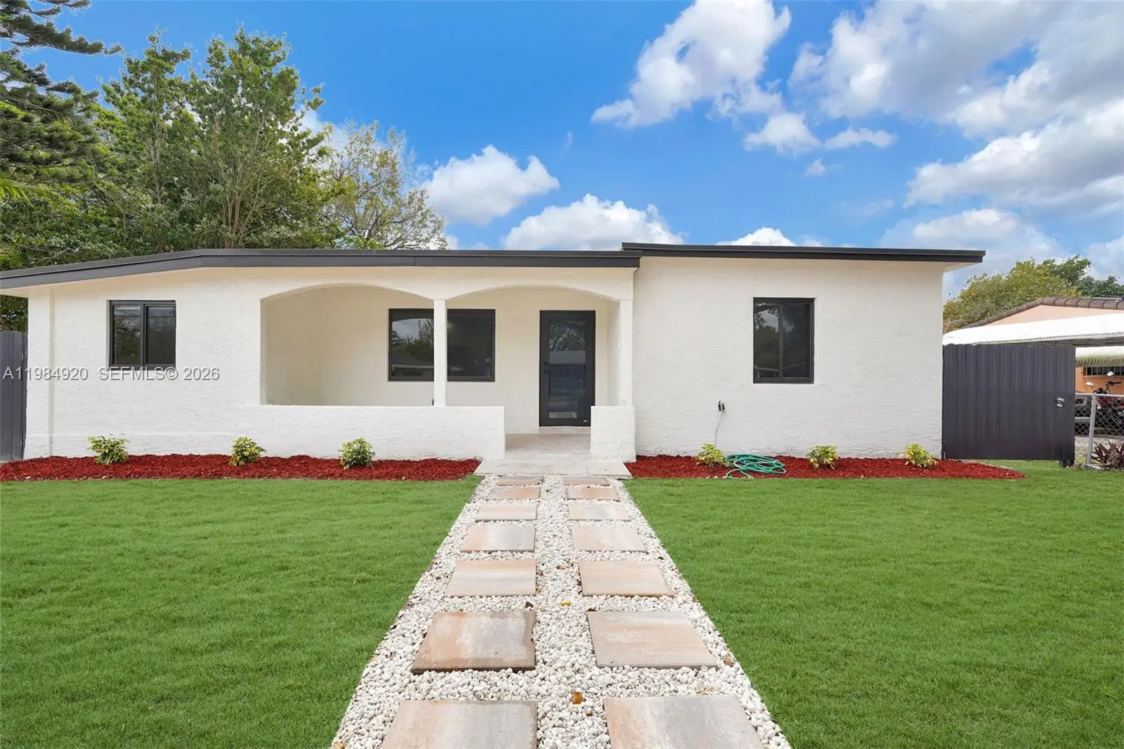 Fully remodeled home on with just 12,000 sq ft lot! Features a modern kitchen with upgraded countertops and finishes, impact windows, and a brand-new roof(2025). Spacious master suite includes a private kitchenette—ideal for in-law quarters or potential rental income. Large backyard offers plenty of room for a pool, expansion, or outdoor entertaining. Turnkey property with excellent flexibility for homeowners or investors.