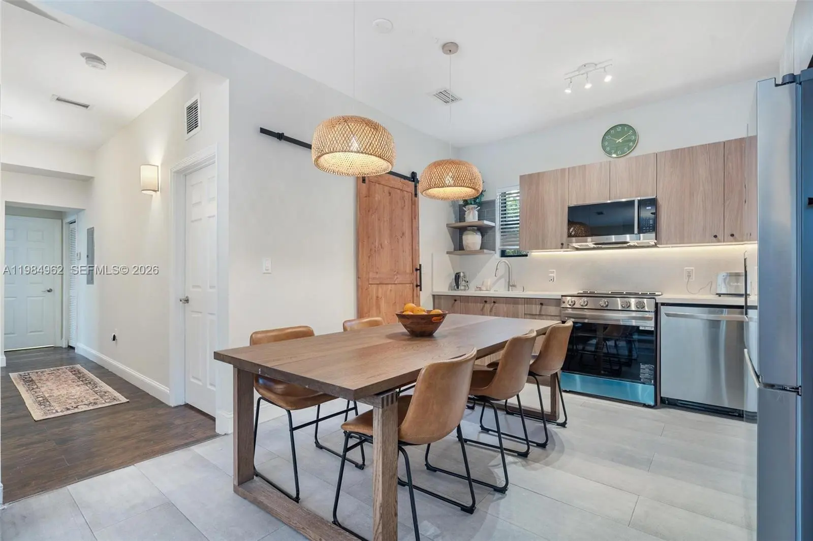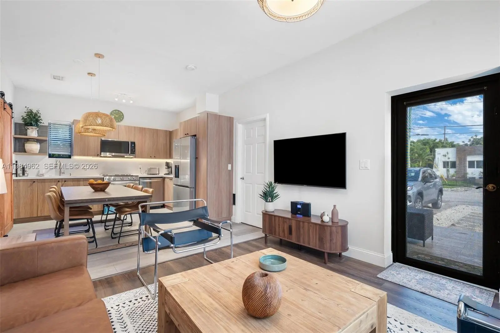 Welcome to your modern Miami oasis, where clean design meets tropical comfort. This beautifully renovated home features a bright, open layout with stylish finishes, warm wood accents, and plenty of natural light throughout. Whether you're here to relax or explore the city, this space is designed to feel both elevated and inviting. The space Step inside to a thoughtfully designed living area with comfortable seating, a sleek TV setup, and a calming, minimalist aesthetic. The fully equipped kitchen includes modern appliances, plenty of counter space, and a spacious dining table—perfect for group meals or working remotely. Each bedroom is designed for comfort, featuring cozy beds, soft linens, and a peaceful, uncluttered vibe to help you recharge after a day in Miami. Enjoy your own private outdoor retreat: Refreshing pool perfect for sunny Miami days Covered patio/lounge area for relaxing or dining outdoors Lush tropical landscaping for added privacy and ambiance Whether you're sipping morning coffee or unwinding in the evening, the outdoor space is a true highlight. Amenities include: High-speed WiFi Smart TV Fully equipped kitchen In-unit washer & dryer Private parking Modern bathrooms with updated finishes Location Conveniently located near Downtown Miami and Brickell, you’ll be just minutes from top restaurants, nightlife, shopping, and beaches—while still enjoying a quiet, residential setting.