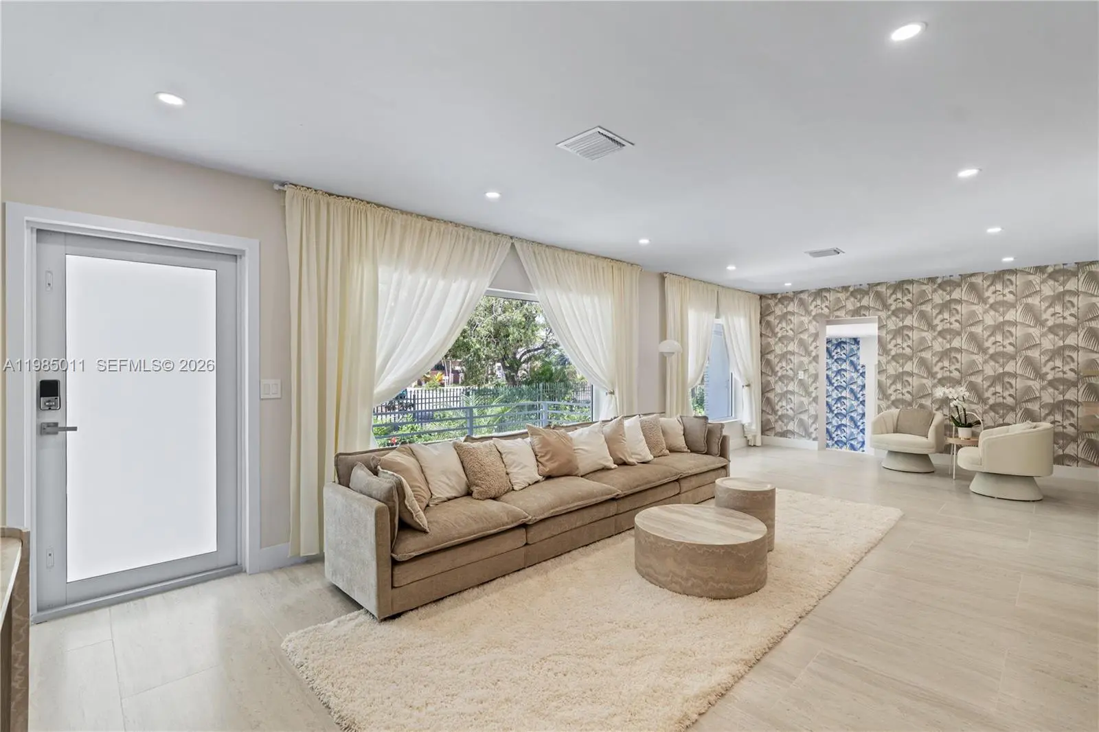Only 7 minutes from Brickell, this exceptional residence offers a rare blend of sophistication and serenity, nestled within a private, gated tropical oasis with lush landscaping and a private pool in the famous Little Havana. Completely reimagined by an interior designer, this new home showcases refined Mediterranean-inspired design, premium finishes, and expansive impact windows that bathe the interiors in natural light. Expansive living area framed by two oversized panoramic windows and four spacious bedrooms: 3 on the main level and 1 upstairs, each with an en-suite bathroom and custom closets. A private first-floor suite with its own entrance serves as an ideal master retreat, while the upstairs suite with a dedicated office provides a peaceful escape. An oversized chef’s kitchen, complete with high-end appliances, flows seamlessly into a sophisticated dining area. A separate guest restroom adds convenience. Three private on-site parking spaces provide a rare level of comfort. Perfect for executives seeking to enjoy the vibrant city lifestyle while retreating to a quiet tropical oasis. 8 minutes to Brickell by car, 12 minutes by bike, and a 3-minute walk to Calle Ocho, with its renowned restaurants, bars, and shops. Pool maintenance and garden services are included. Move-in ready. Brand-new home and furniture. First rental.