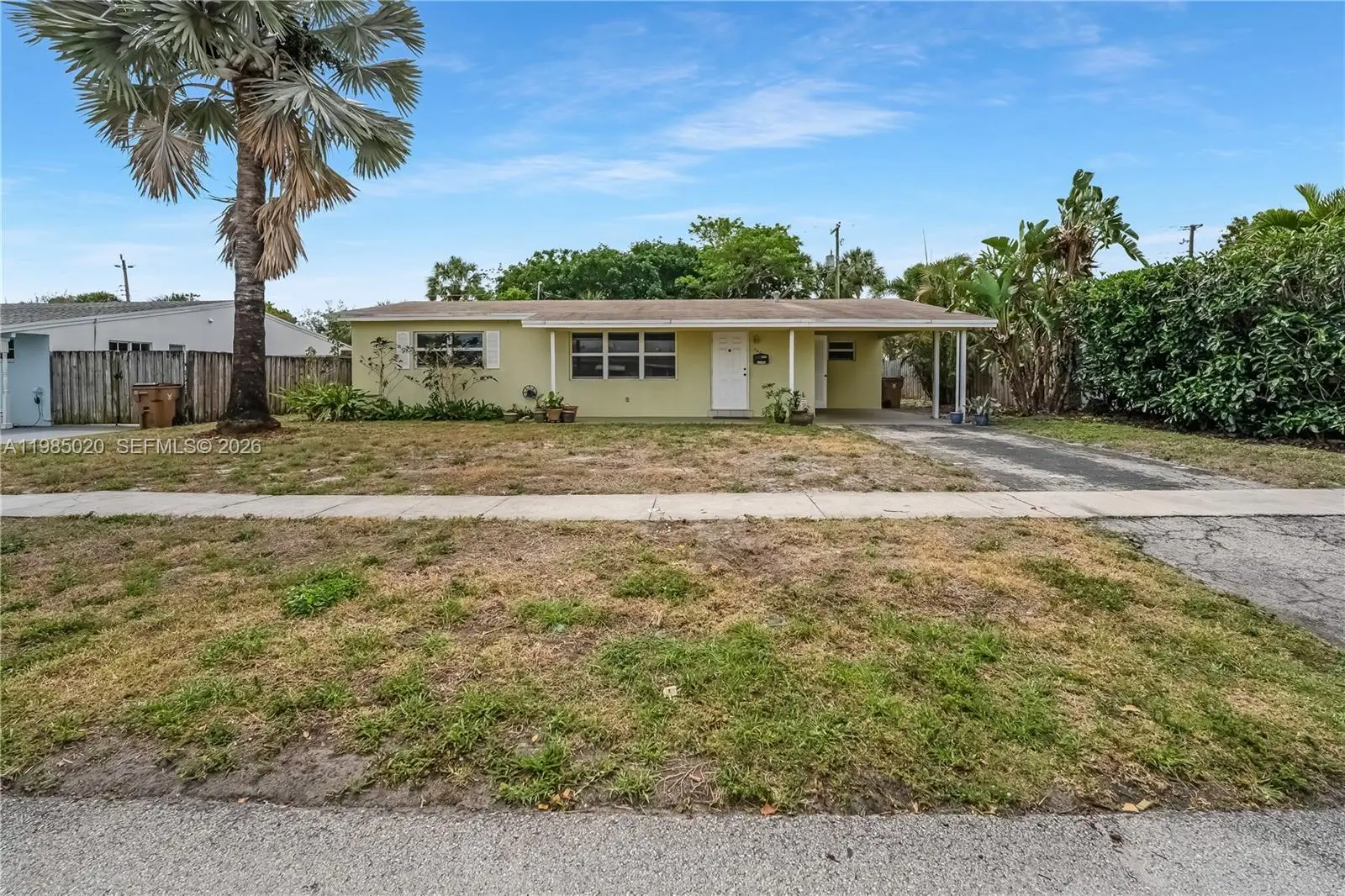 Bike to the beach and enjoy waterfront dining at The Cove Waterfront Restaurant from this well-located home in Deerfield Beach. Some photos are virtually staged. Features include a newer roof, impact windows, terrazzo floors in the bedrooms, and tile throughout the main living areas (with terrazzo underneath). The layout offers a dining room, attached carport, and a screened back porch for relaxing outdoor living. Kitchen and bath are ready for your updates—an excellent opportunity to create your own South Florida retreat.