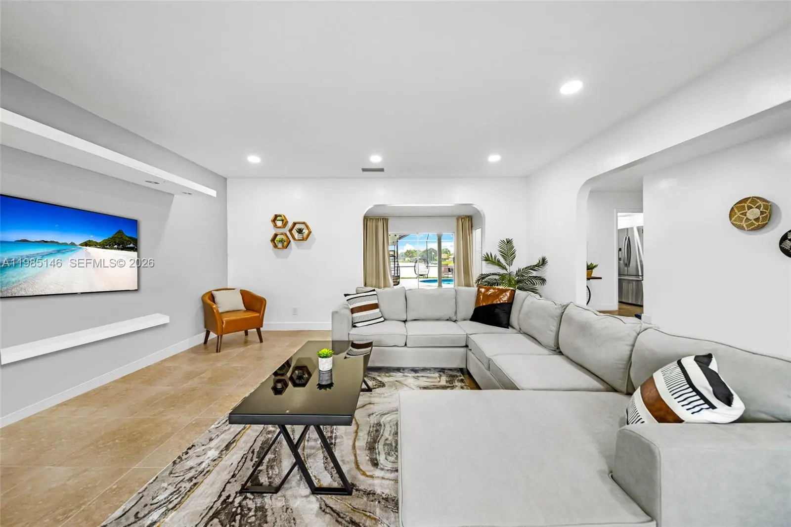 Beautiful lakefront pool home in a highly desirable neighborhood, offering space, privacy, and a flexible layout suited for a variety of living arrangements. This 5 bedroom, 4 bathroom residence includes two primary suites, a private in-law quarters with its own entrance, bathroom, and AC, and a separate theater room. The main living areas connect seamlessly to the backyard, where a pool overlooks the lake, creating a comfortable setting for both everyday living and entertaining. Additional features include hurricane shutters, a security system, smart central AC, a spacious laundry room, and a fully fenced yard with PVC fencing. Located in a quiet, family-oriented community with no association or restrictions, this home is just minutes from top-rated schools, universities, hospitals, parks, beaches, shopping, dining, Hard Rock Stadium, and the Hard Rock Hotel and Casino, offering both convenience and long-term value.