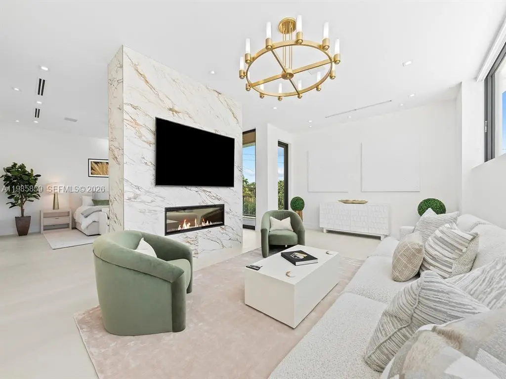 Discover a newly constructed, modern estate situated within the prestigious Country Club community. This exceptional residence features five bedrooms, five bathrooms, as well as an office & library, encompassing a total of 4,780 square feet of designer-curated luxury. The residence is enhanced by a through-and-through gas fireplace that provides warmth, while the high-end designer kitchen is equipped with quartz countertops, state-of-the-art appliances, and two oversized islands. The home embraces smart technology, allowing for the convenient management of climate control, lighting, audio systems, pool operations, security, water features, and fire elements. Upon stepping outside, one will encounter outdoor amenities that evoke a resort-style atmosphere, featuring a front entrance water feature, award-winning landscaping, and a cozy fireplace overlooking the pool. Custom fire features further elevate the experience for enchanting evenings. The meticulously landscaped outdoor living area is designed for both entertaining and serene relaxation. This luxury retreat invites prospective tenants to experience the seamless integration of architectural sophistication with superior comfort, showcasing exquisite furnishings from renowned brands such as RH and West Elm. ***Furniture is included***