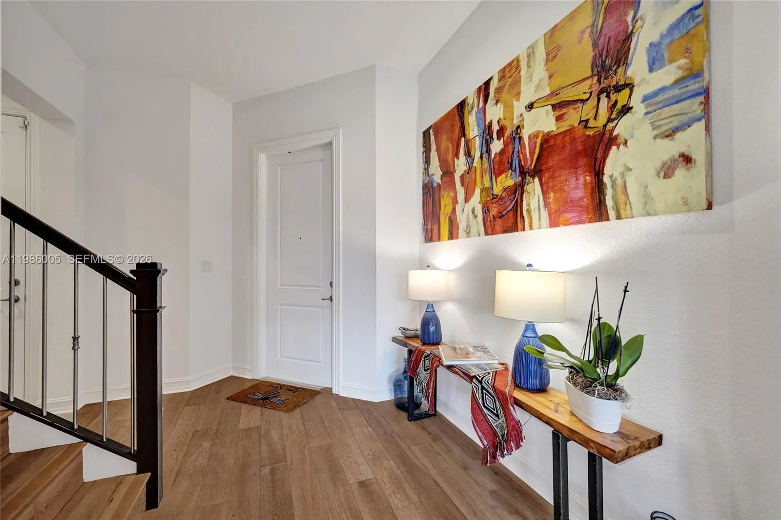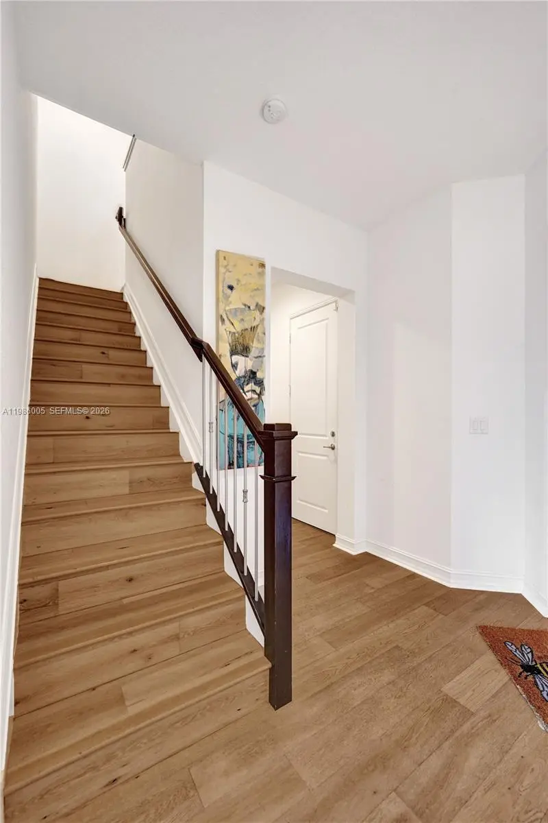 Beautiful 3 Bed / 2.5 Bath townhome located in a peaceful, lush setting within a private, gated community featuring manicured common areas. Bright and open layout with a kitchen that showcases granite countertops, white soft-close cabinets, stainless steel appliances, a large center island, and ample pantry space. Ground floor finished with ceramic tile, spacious dining area, and powder room. 2-car garage with electric vehicle connection + 2 additional driveway spaces. Upstairs offers a spacious loft and a primary suite with double-door entry, dual vanities, large walk-in closets, glass-enclosed shower, and separate soaking tub. The primary bedroom features its own private balcony overlooking open garden and lake views—perfect for relaxing mornings or evenings. Impact windows throughout, elegant window treatments, and an upstairs laundry room with washer and dryer. Community amenities include a heated pool and modern gym. Conveniently located near I-75, shopping, and dining.