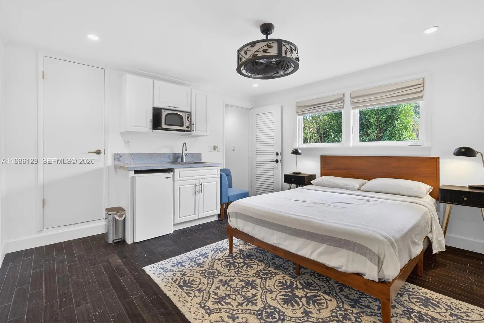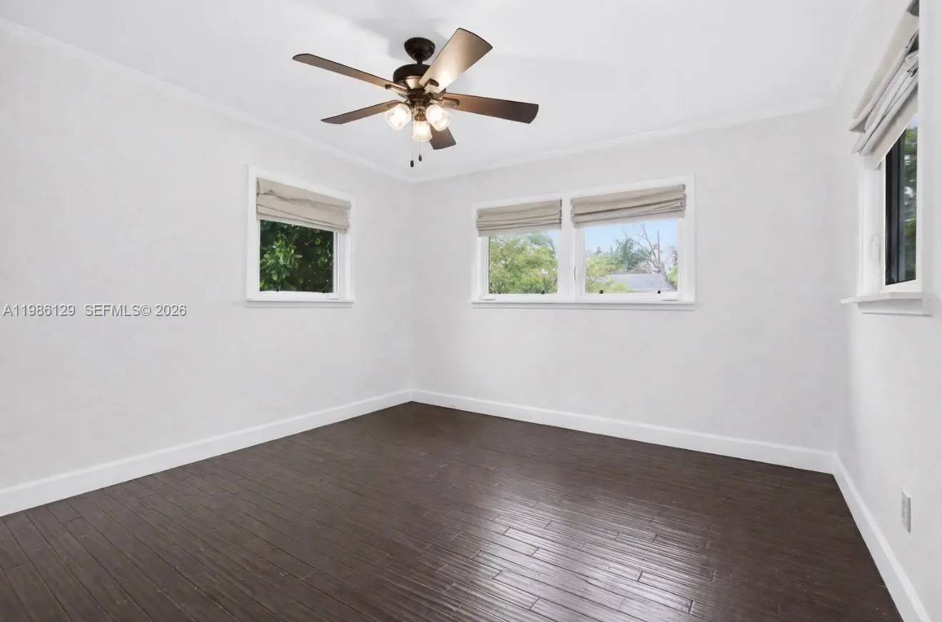 Beautiful mid-century South Miami home built in 1950, reflecting the South Florida architectural style of the Alfred Browning Parker era with vaulted ceilings, natural light, and open living spaces. Recently waterproofed, painted, and updated with red cedar siding. This 4BD/2BA residence features hurricane-impact windows and doors, updated electrical, plumbing, and central A/C, while preserving original details including the solid hardwood louver-style front door. Interior offers wood floors and bright open layout. Includes separate studio with income potential. Outdoor areas feature lush landscaping, exotic trees, covered terrace, and original built-in concrete BBQ. 150 sqft fully powered covered shed. Prime location near Coral Gables, University of Miami, shopping, and major roads. Zoned for David Fairchild Elementary, South Miami Middle, and South Miami Senior High.