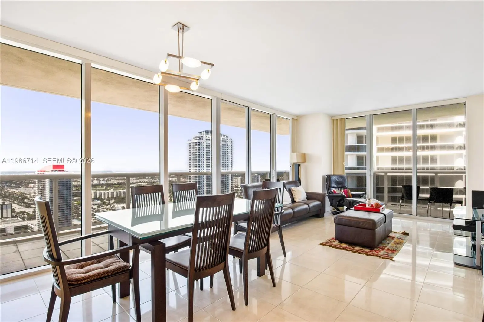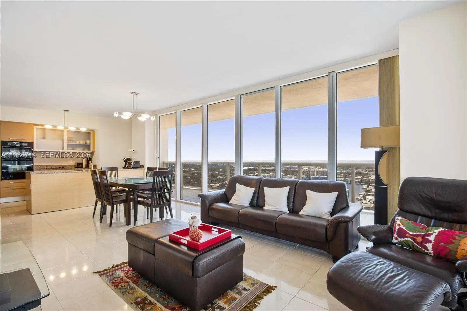 Experience breathtaking panoramic views of the ocean and Intracoastal from this stunning northwest corner residence featuring 2 bedrooms and 2 bathrooms. Elegantly furnished, the unit boasts marble flooring throughout, with a king-size bed in the primary suite and a queen-size bed in the second bedroom. Enjoy resort-style living with access to a two-story fitness center, full-service spa, sauna, steam room, three pools, poolside bar service, 24-hour concierge, and valet parking.