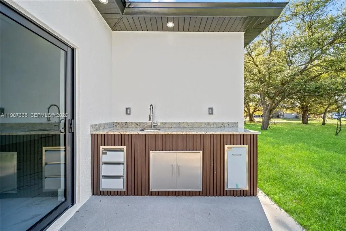 Brand-new construction located in the heart of Lehigh Acres. This property features 4 bedrooms and 2 bathrooms, with a 2-car garage. Interior highlights include luxury finishes, modern ceiling lighting, elegant light fixtures, solid doors and windows, and a smart home system. No carpet throughout. The kitchen offers granite countertops, and the home includes washer and dryer. Both bathrooms feature showers (no bathtub). Exterior features include a paver driveway, outdoor kitchen, and a secondary exterior door from the garage. Situated on an approximately 0.25-acre lot. Seller is offering assistance with closing costs. Easy to show.