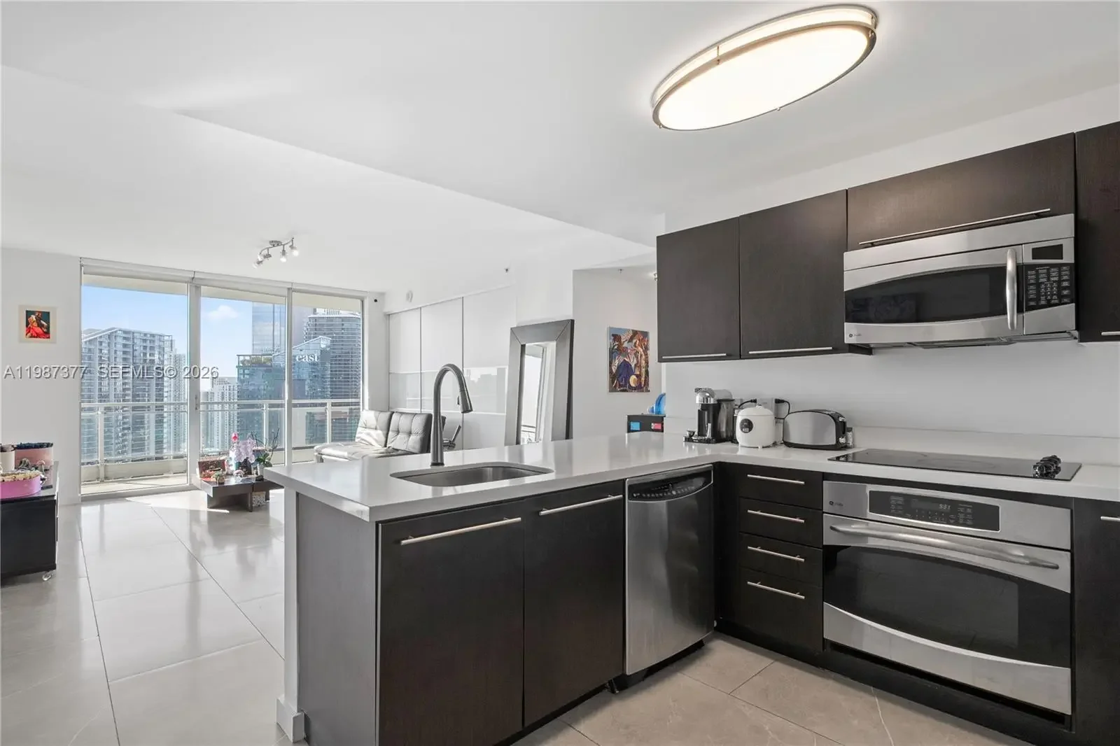 Experience 43rd-floor living at The Ivy, a gated community on the Miami River steps from Brickell City Centre. This renovated 2-bed, 2-bath residence offers panoramic skyline and river views, a bright southern exposure, and a split floor plan ideal for privacy or a dedicated workspace. Recent updates include new flooring, upgraded finishes, and a glass-enclosed jacuzzi in the primary suite—an uncommon feature in this price range. The home features impact windows, a spacious balcony, and a move-in-ready interior designed for low-maintenance living. The Ivy provides resort-style amenities, including a pool, spa, fitness center, business center, and 24/7 security, along with riverfront walking paths. Its central location provides immediate access to dining, shopping, and transportation while maintaining a quiet, private setting away from Brickell’s congestion. This residence is ideal for professionals, investors, or anyone seeking a modern, secure, and highly walkable urban lifestyle.