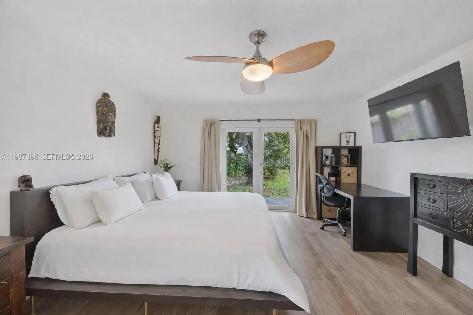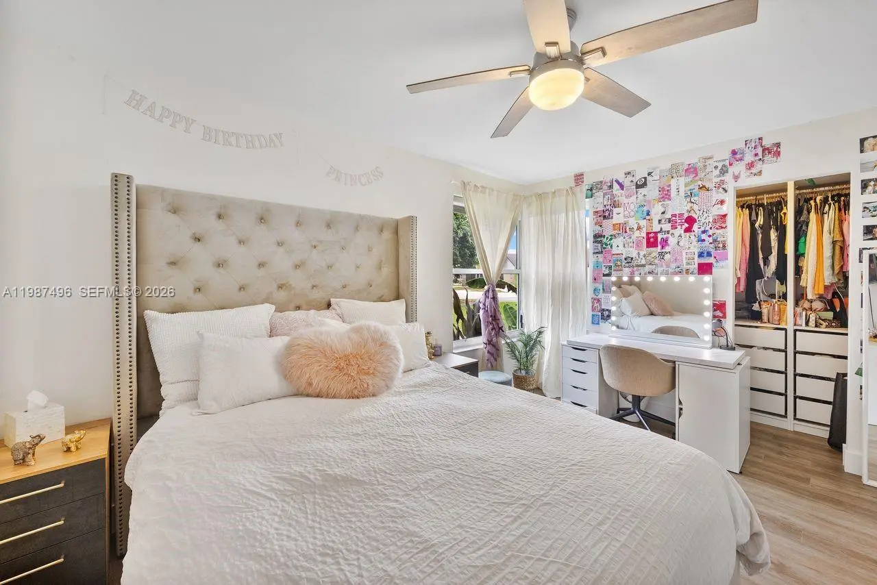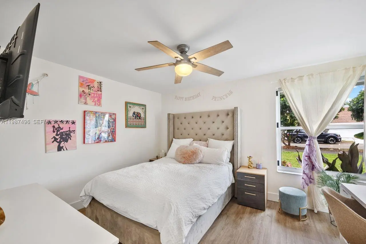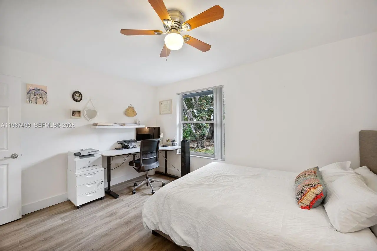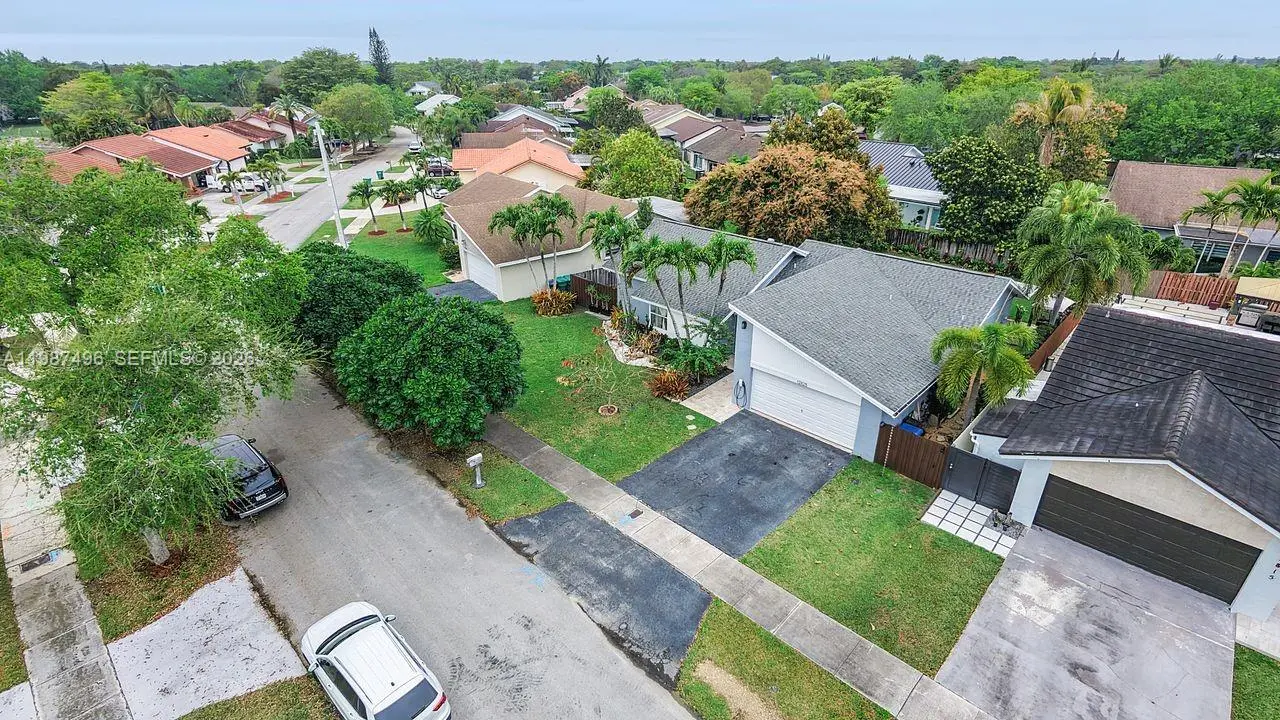Very well maintained and move-in ready, this 3-bedroom, 2.5-bath home plus a versatile den/office offers comfort, flexibility, and a prime location with no HOA. The home features volume ceilings, laminate flooring throughout, and custom lighting, creating a bright and welcoming atmosphere. A new upscale German kitchen with Bosch appliances opens seamlessly to the main living areas, enhancing both functionality and design. The flexible den is ideal as a home office, gym, or playroom. Enjoy indoor-outdoor living with a covered patio equipped with ceiling fans, lighting, and TV setup—perfect for entertaining. The backyard is a private oasis featuring a jacuzzi, outdoor shower, and fruit trees including mango and avocado, with ample space to add a pool. Additional features include impact windows, security cameras, Ring alarm system, digital temperature control, and automated irrigation. Bathrooms have been tastefully updated, and the fenced yard with lush landscaping offers both privacy and charm. Conveniently located near top-rated schools, Costco, Publix, and major conveniences, this home delivers space, upgrades, and an unbeatable Kendall location.