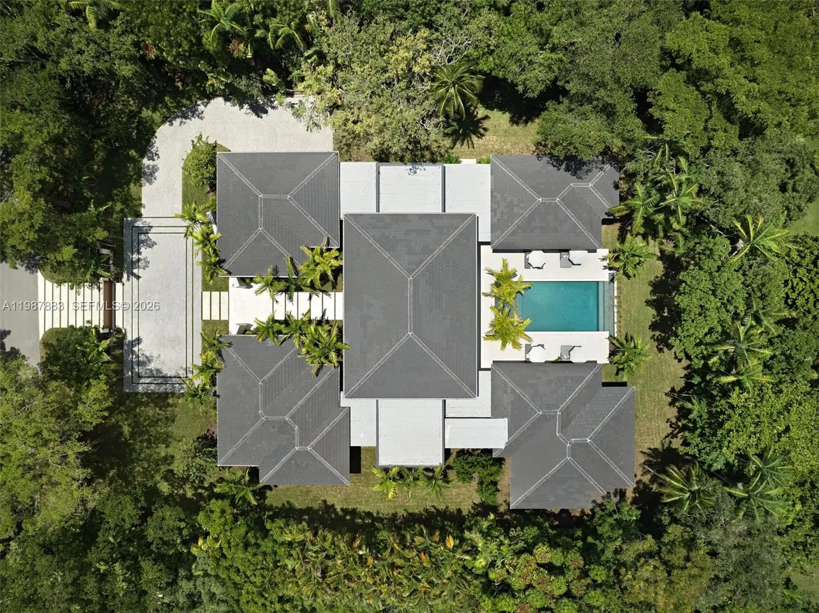 One-of-a-kind luxury home in the highly sought-after neighborhood of North Pinecrest. Designed by award winning architect/designer Thomas Diverio and featured nationally in Florida Design magazine, this custom-built new construction single-family home boasts luxury and elegance at every turn. As you drive up to the property, you are greeted by a stunning facade and lush landscaping. A water feature welcomes you inside only to be greeted by a large great room with 18-foot-tall ceilings and custom millwork. The home has an open concept gourmet kitchen, complete with Subzero/Wolf appliances, custom cabinetry, and an island. The expansive living room features a walk-in wine cellar and floor-to-ceiling windows, flooding the space with natural light. The master suite has a luxurious bathroom, custom walk-in closet, and private outdoor spa. The home also features a dedicated office. The home has a soundproof theater for movie nights, a spa for relaxation, and a wine cellar for the wine enthusiast. The outdoor area is a true oasis, with covered patios, a full outdoor kitchen, covered outdoor dining, and a sparkling infinity pool surrounded by privacy and lush landscaping. The property has a brand-new pickle ball court and three car garage with a dedicated music studio, attic, and storage room. The detached guest house provides an additional two bedrooms/baths for visitors.