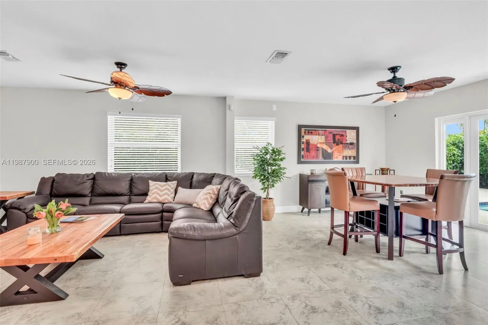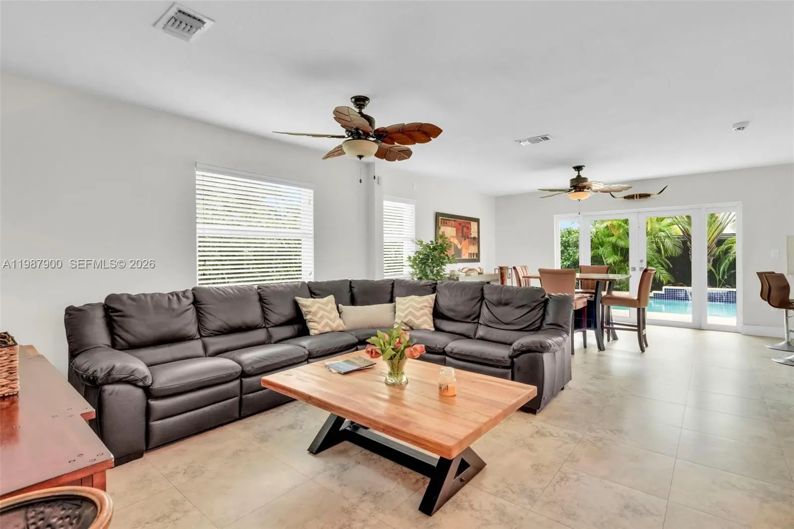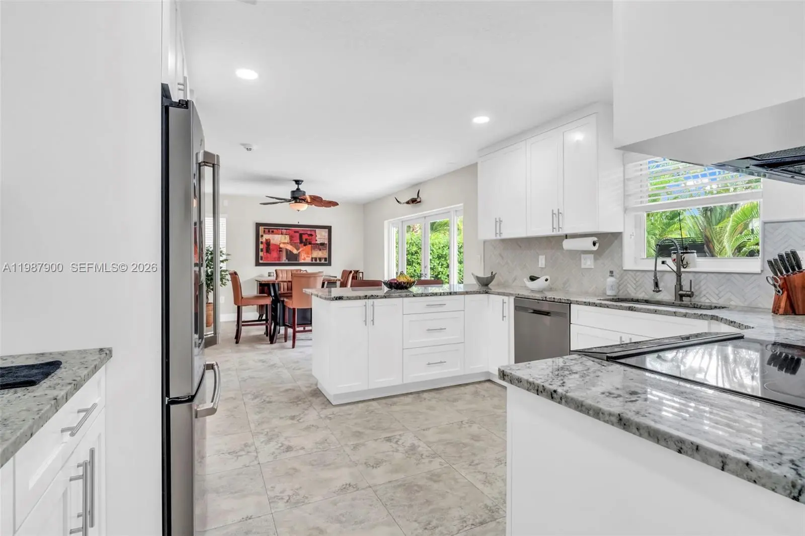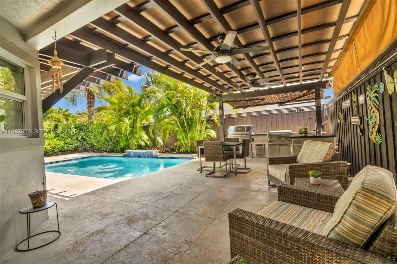 Beautifully remodeled and move-in-ready West Kendall gem! Perfectly positioned on an elevated corner lot, this thoughtfully updated home showcases impact windows, a remodeled open kitchen with custom hardwood cabinets and GE Café appliances, upgraded baths, porcelain wood-look tile floors, custom hardwood doors throughout, and new washer & dryer. From the front yard’s modern fountain and lush landscaping to the resort-style backyard, every detail impresses. Enjoy exceptional outdoor living with a full outdoor kitchen featuring a Double Eagle grill, teppanyaki, fridge, pool, Coral Stone terrace with drainage, and sprinkler system with well water. Garage converted to 4th bedroom + separate storage area. Per county record, home is 4-bedroom. HOA only $128 quarterly.