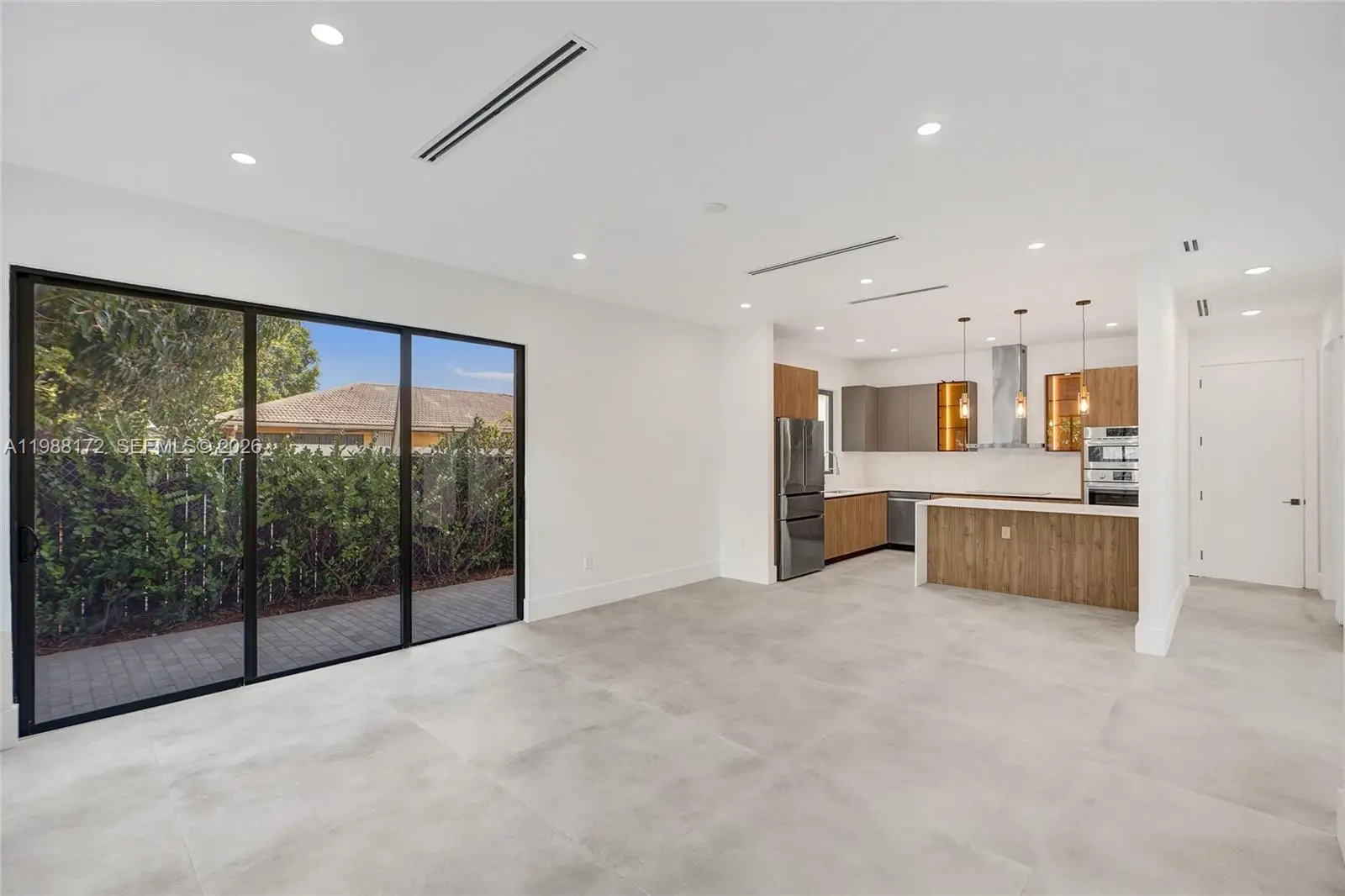 Brand new modern residence featuring 3 spacious en-suite bedrooms plus a guest powder room. This beautifully designed home offers an open-concept layout filled with natural light, high ceilings, and floor-to-ceiling impact windows throughout. The kitchen showcases a sleek European-style design with quartz countertops, custom cabinetry, and stainless steel appliances, seamlessly connecting to expansive living and dining areas—perfect for entertaining. Enjoy indoor-outdoor living with large sliding glass doors opening to a private backyard with pavers and lush landscaping. Upstairs, the primary suite includes a generous walk-in closet and a private balcony. Additional features include a spacious garage with ample storage and extra parking. Located in a prime central area just minutes from Coral Gables, Coconut Grove, and Brickell, offering easy access to top dining, shopping, and major highways. Pet-friendly and NO HOA, easy to show.