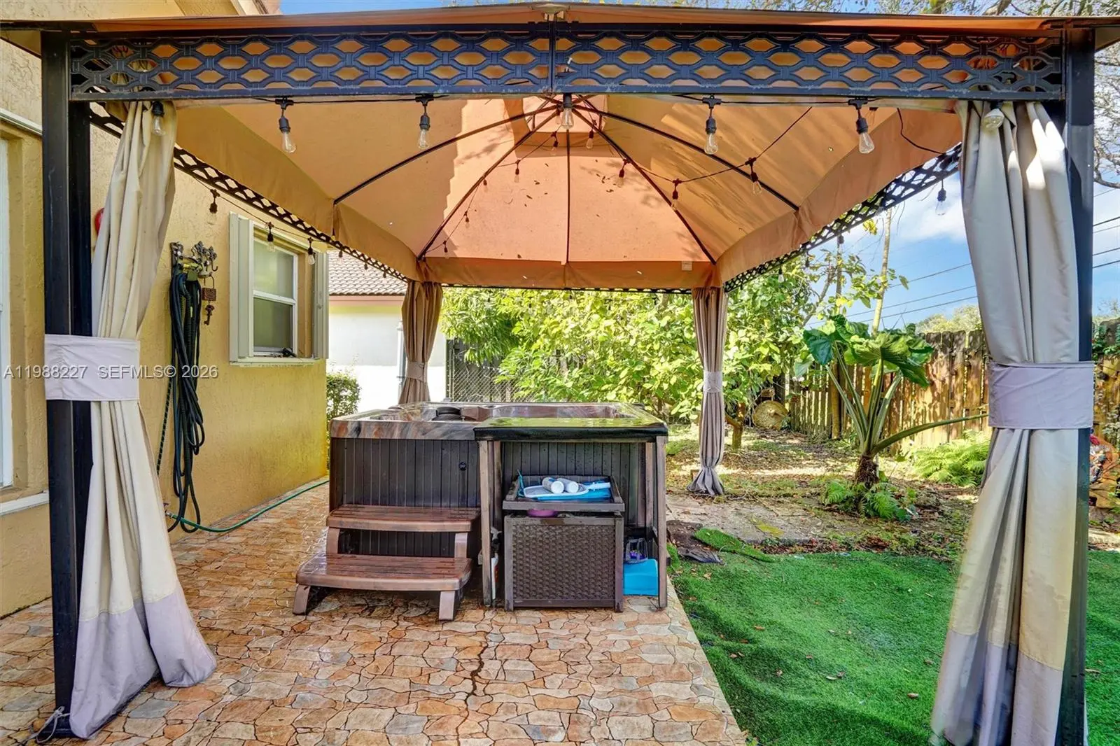 Prime Location. This charming home is just 3 minutes from HWY 27 (Okeechobee) and 15 minutes from I-75, offering easy access to major highways. Spacious layout. The property features three bedrooms, two full bathrooms, and a two-car garage, making it ideal for families or those seeking comfort. Quality Features. Includes an energy-efficient tankless electric water heater for on-demand hot water. Private Outdoor Space. The backyard boasts a relaxing jacuzzi and fruit trees (mango, avocado, and papaya), perfect for outdoor enjoyment. Nearby Amenities. Just a 3-minute walk to a community park with a swimming pool and tennis courts, ideal for recreation and leisure. No HOA approval required. No association approval needed for move-in. Low Monthly Fee: Only $130.