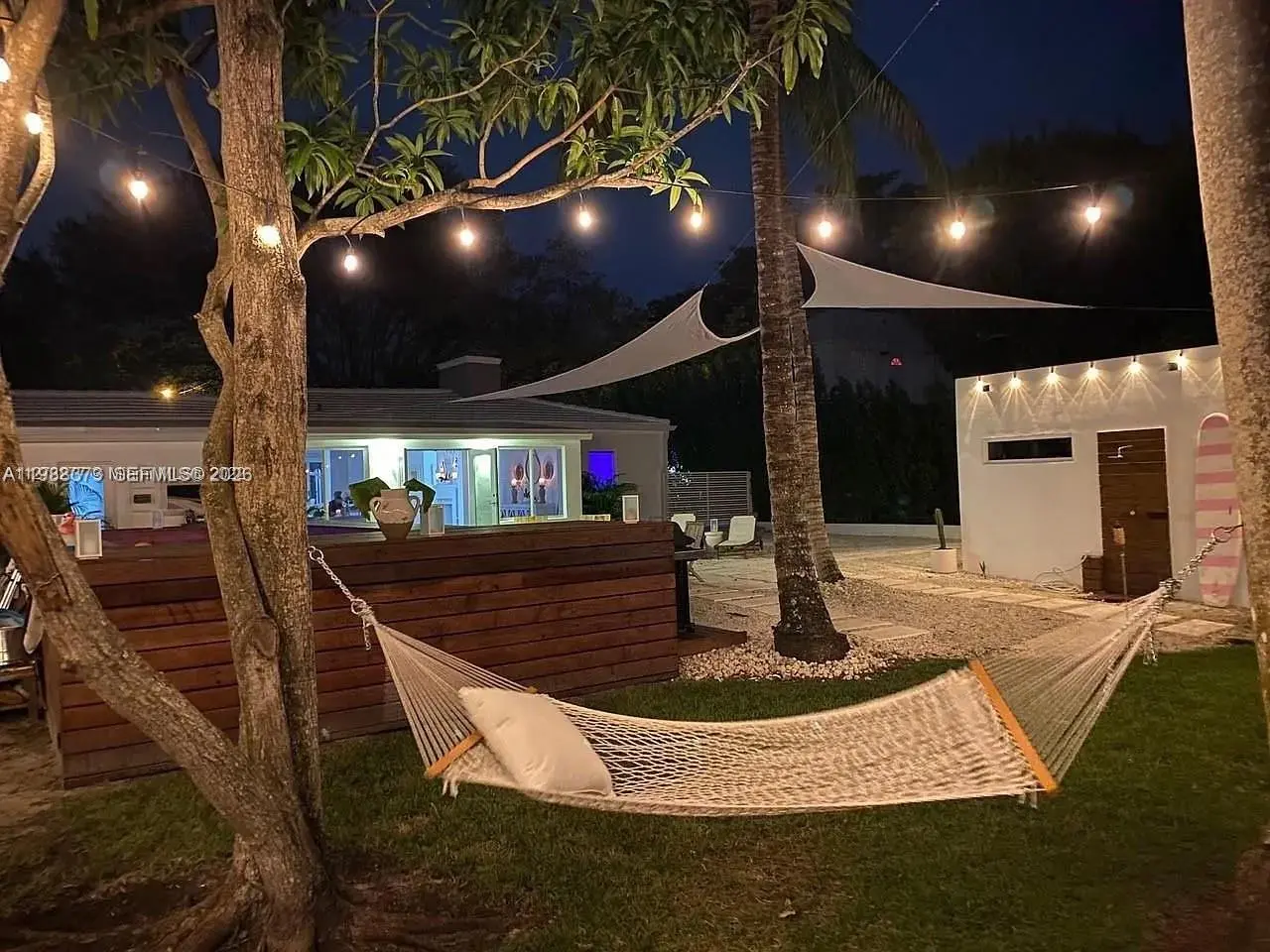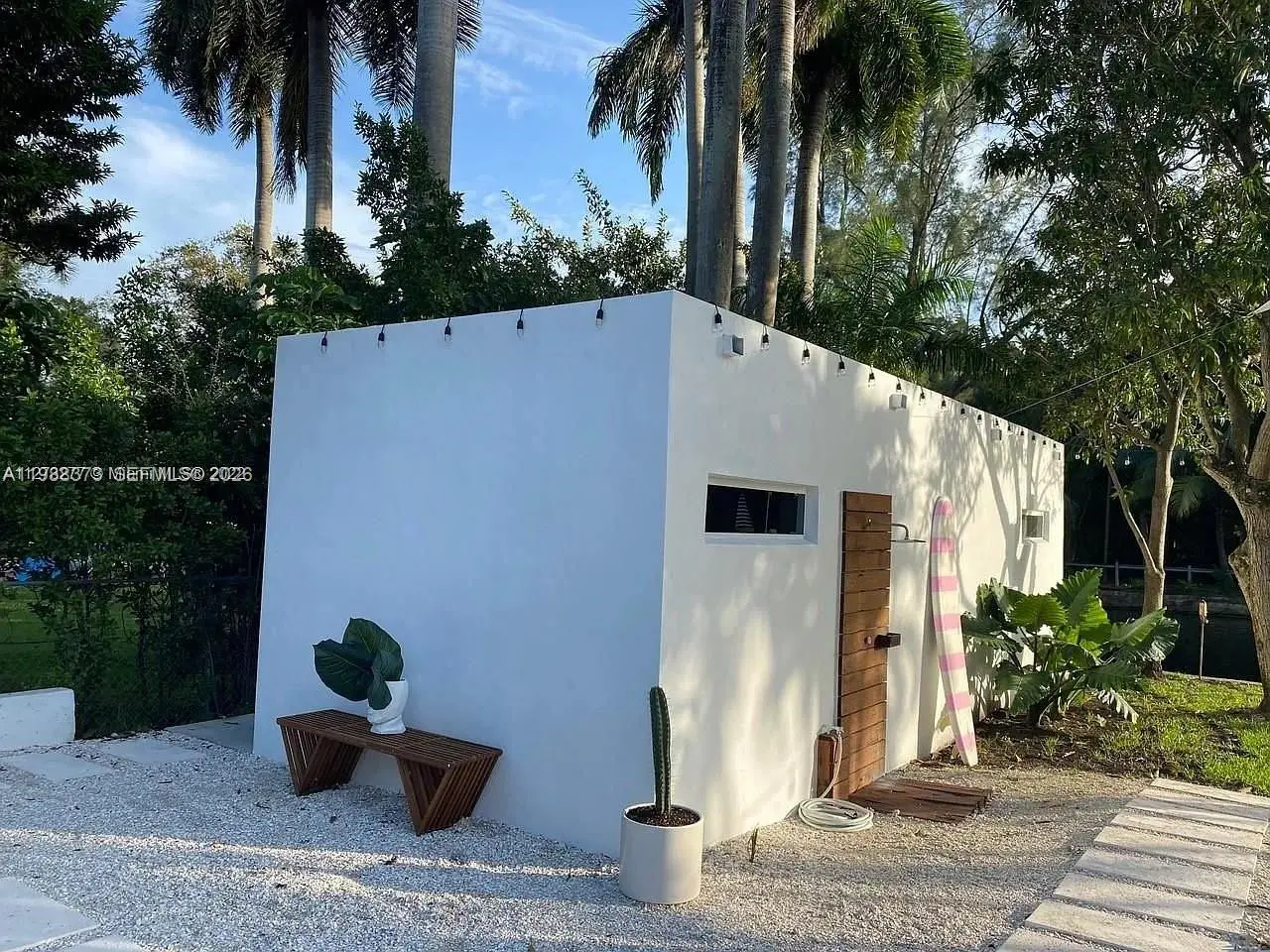 “A private riverfront compound with a guest house in Sherwood Forest” Fully renovated riverfront property in Sherwood Forest, El Portal. 3BD/2BA main house plus detached 1BD/1BA guest cottage. Updated kitchen and bathrooms, porcelain flooring, vaulted ceilings, impact windows and doors. Washer/dryer in unit, ample closet space, and parking. Riverfront lot with mango trees and above-ground pool. Park directly across the street. Quiet, highly desirable neighborhood.