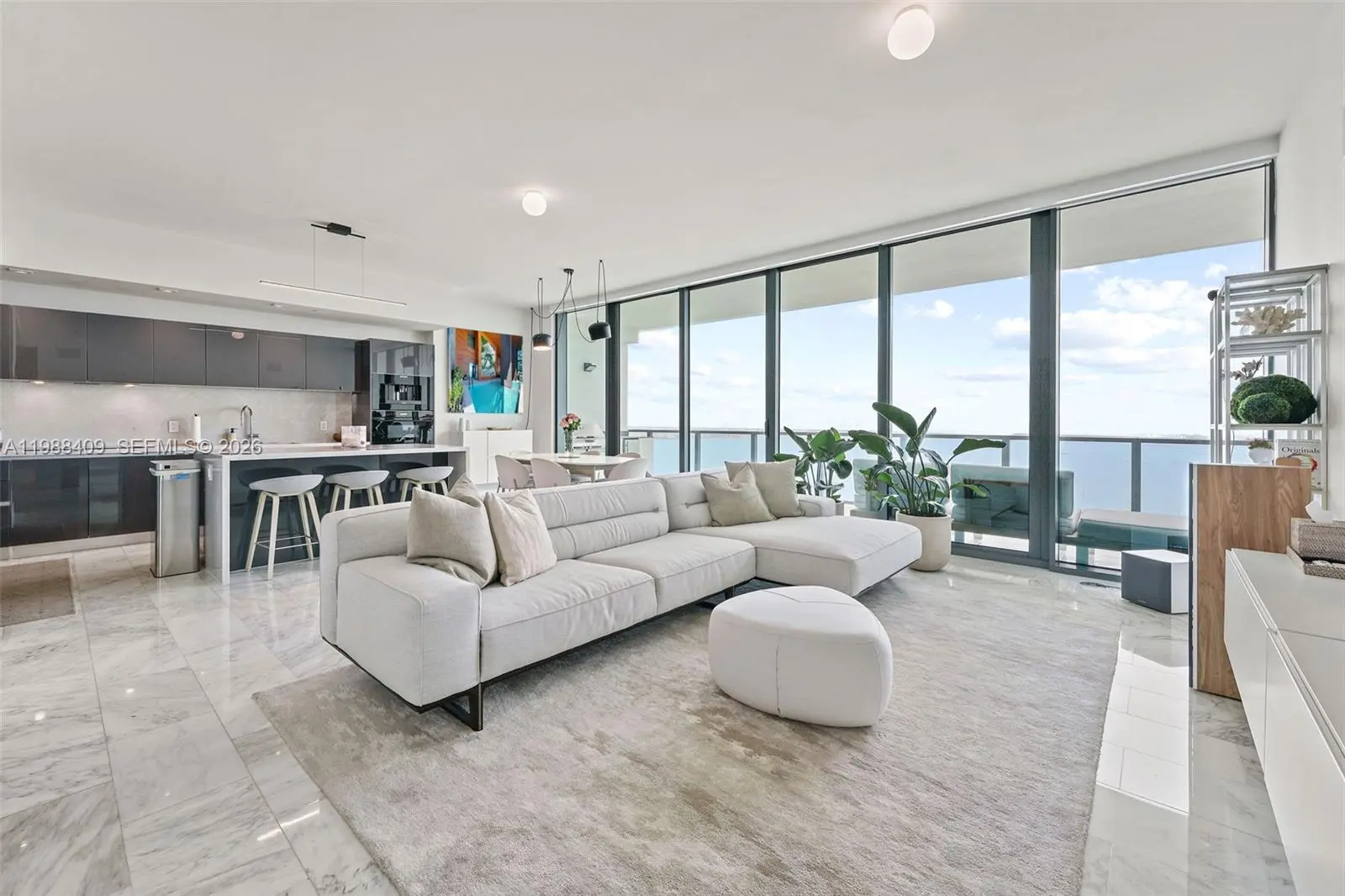 FOR RENT! This spacious and luxurious 2-bedroom, 2-bathroom plus den corner unit is located in the heart of Brickell in the prestigious Echo Brickell Residences. Enjoy breathtaking views of Biscayne Bay from this 1,634 sq. ft. home featuring marble floors throughout, modern Italian cabinetry, top-of-the-line Sub-Zero and Wolf appliances, a built-in coffee and espresso machine, and a custom water dispenser. The Savant home technology hub controls Lutron lighting, integrated audio, and unit access. The property includes two large terraces, with a built-in grill and refrigerator on the east terrace. Tasteful upgrades include a custom window opening next to the Italian bathtub in the master suite and dual motorized sheer/blackout window treatments in both bedrooms. Echo Brickell Residences offers A+ concierge services, 24/7 valet parking, and spectacular amenities, including a state-of-the-art gym, infinity pool, and spa. It is conveniently located within walking distance of Mary Brickell Village and Brickell City Centre, and just 10 minutes from Miami International Airport. Please note that the furnishings and decor shown in the images are for visualization purposes only and may not reflect the actual items in the property. Offered also for sale. MLS #: A11921444