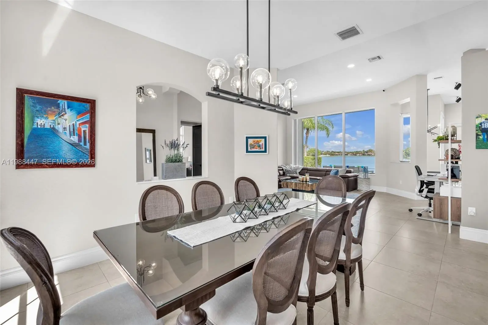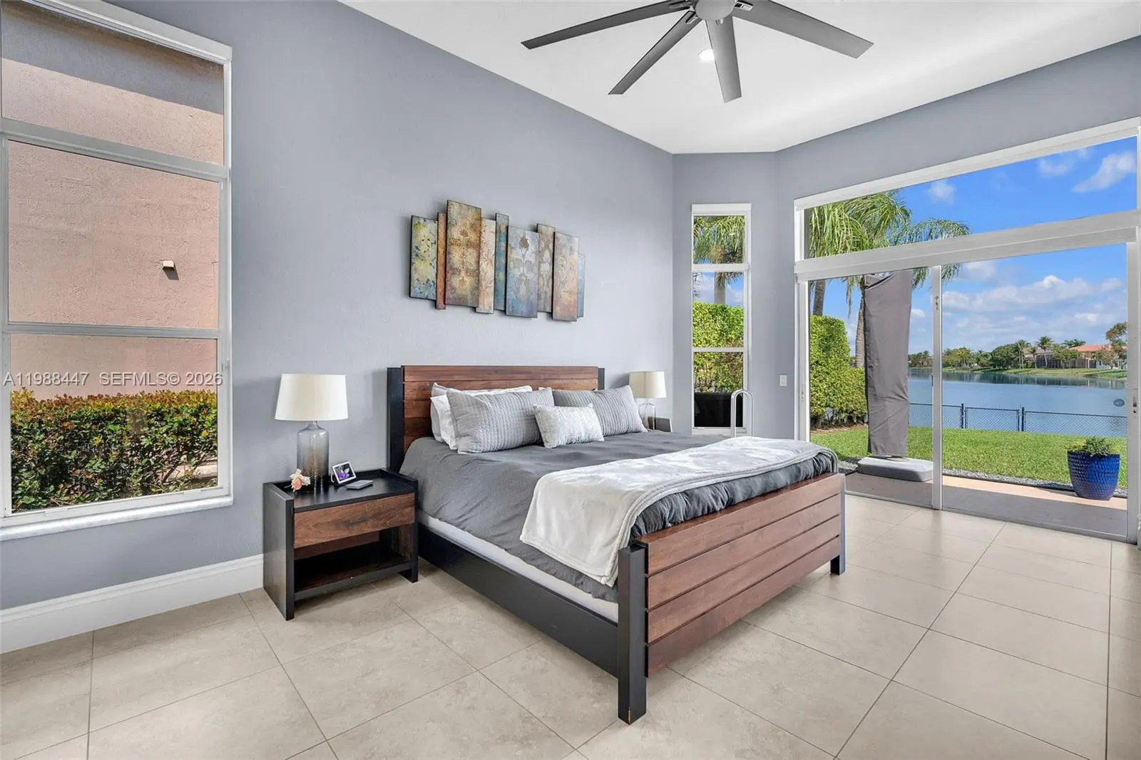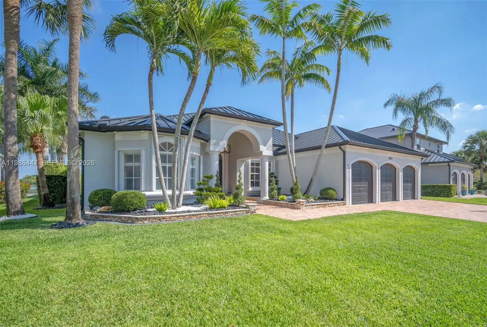 Welcome to this "unicorn" Birch model. A rarely available floor plan in this guard-gated community that boasts a breathtaking long-lake view. Already pre-inspected and move-in ready, this home delivers a long list of desirables that is sure to check every box on your wishlist: Metal roof with surrounding rain gutters (12/2023)? CHECK. Full accordion shutter protection? CHECK. Manicured landscaping? CHECK. High efficiency two-zone Trane A/C units (2021) and 50-gal Rheem Hybrid water heater (10/2025)? CHECK. An oversized lake lot with lake-fed auto sprinklers and plenty of room for a pool and outdoor activities? CHECK, CHECK, CHECK! The tech alone is a total "wow" and fully loaded with a Wi-Fi 7 mesh system, Wi-Fi enabled appliances, switches, garage doors, sprinkler system, indoor/outdoor Nest security cameras, and the latest 4th-gen Nest smart thermostats. But wait, there's more! Upgraded kitchen/baths with natural quartzite counters; 24x24 continuous tile; soaring 10 & 12-ft ceilings; new solid-core interior doors (12/2025); indoor laundry with sink; exterior soffit lights, and a true 3-car garage with metallic epoxy floors, full cabinetry, and TWO interior EV chargers. Yard work is effortless with the included top-of-the-line EGO electric mower & equipment and skip the gym... the Peloton Tread, 42" Tempo Fit with weights, and Hydrow Rower are also included. The heavy lifting is done, every detail is dialed in, and the lake view seals the deal!