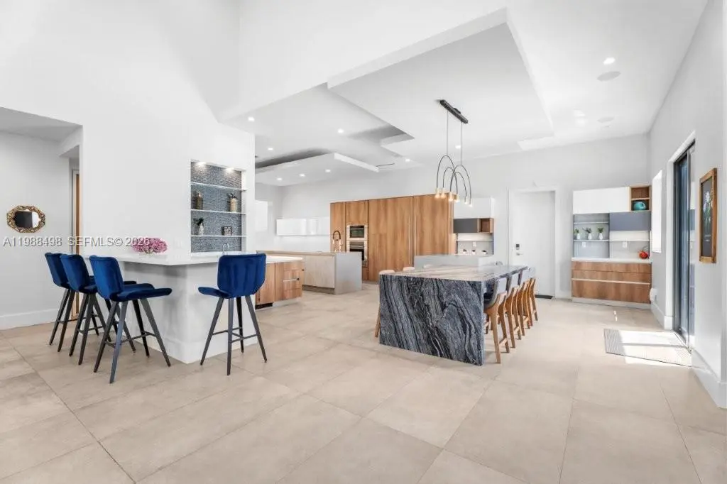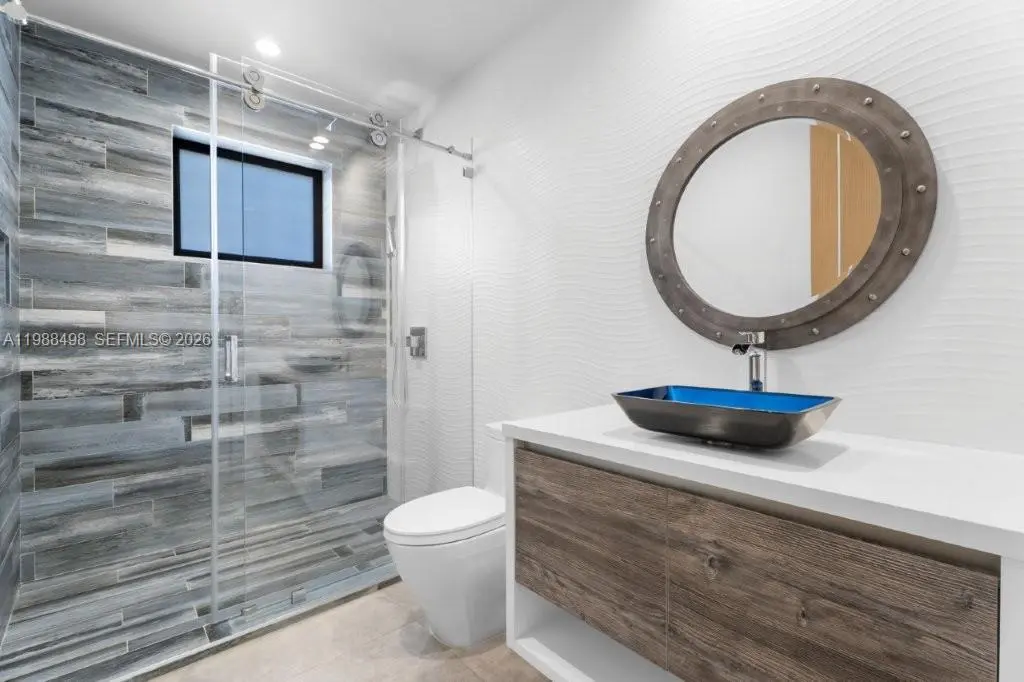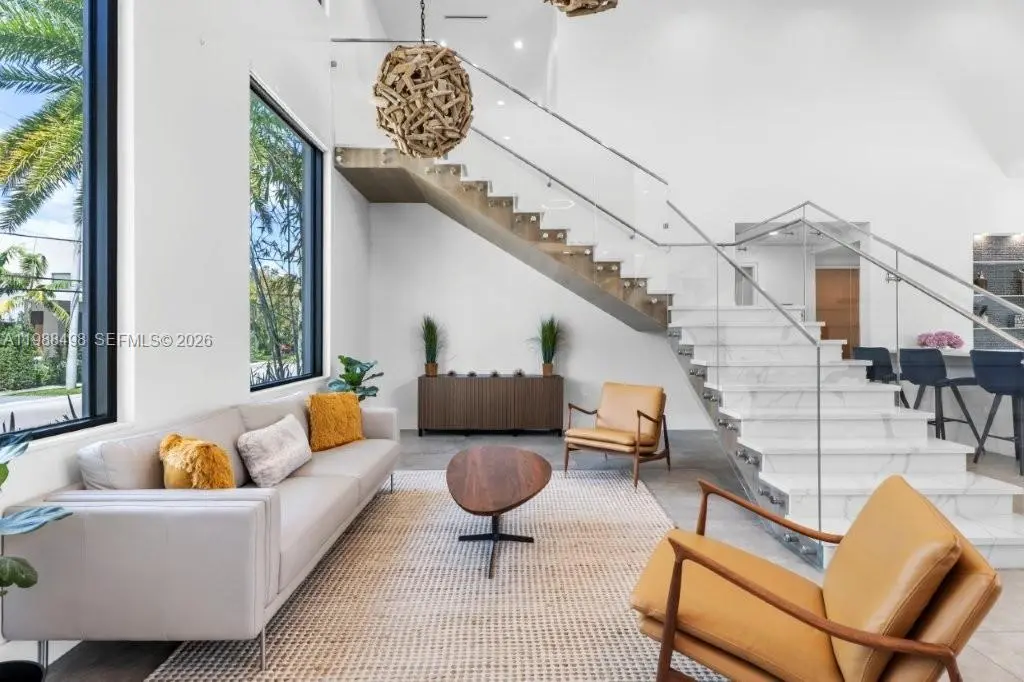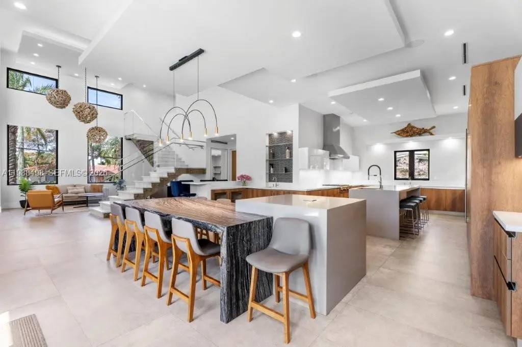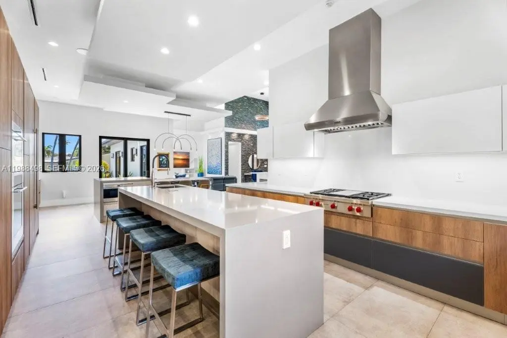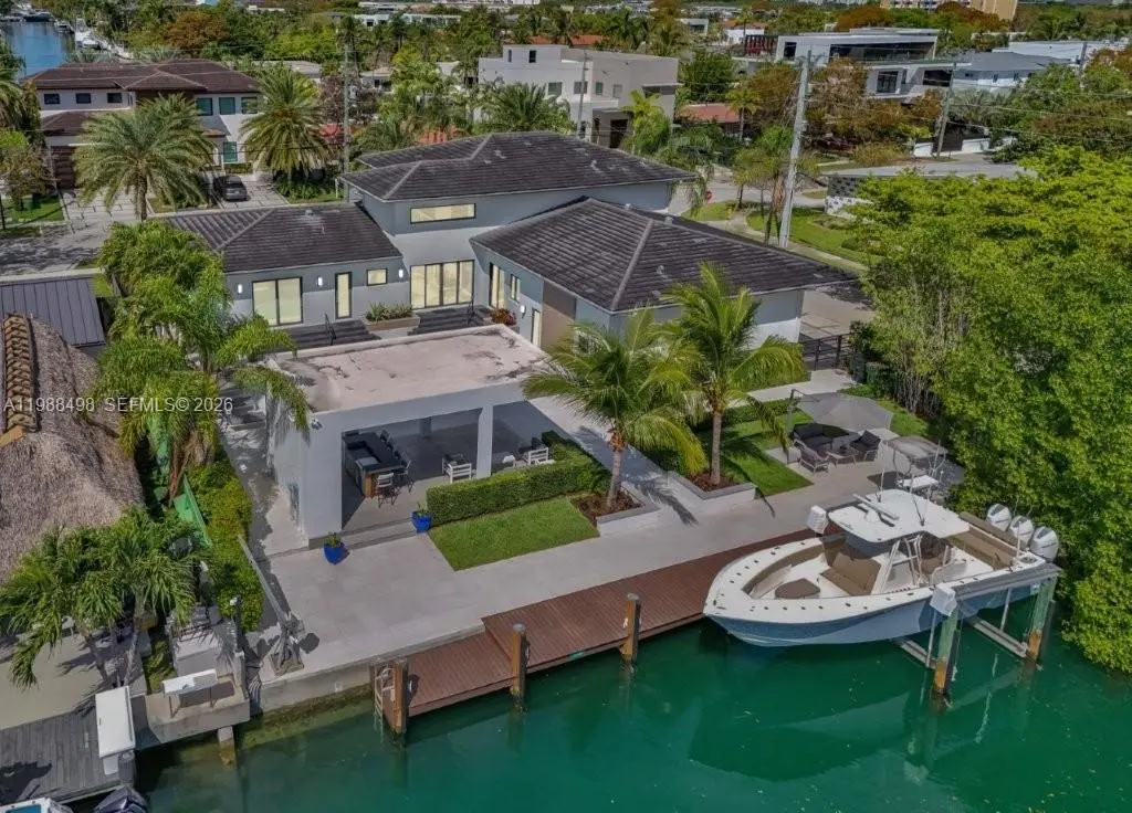Experience luxury Miami waterfront living in this meticulously custom built 4,772 SF residence in the prestigious guard-gated community of Keystone Point. Situated on an oversized 100’ x 125’ corner lot, this exceptional home offers 100' feet of deep-water frontage with direct ocean access and no bridges to bay. 4 bedrooms and 5 designer bathrooms, this home showcases high-end finishes, a grand hurricane-impact pivot entry door, custom solid wood doors, and seamless indoor-outdoor living. The gourmet kitchen boasts natural gas cooking with premium Sub-Zero and Wolf appliances, plus a wet bar with dual beverage dispensers and ice machine. A full smart home system includes integrated audio/video, multi-zone sound, lighting automation, security, cameras, Wi-Fi, pool automation, and more, enhanced by a Bowers & Wilkins and JL Audio system. Additional features include impact windows/doors, copper plumbing, dual recirculating water heaters, an oversized air-conditioned garage (lift-ready), and parking for 11 cars. The corner lot allows easy side access to the garage and dock. Enjoy a private waterfront oasis with a 20K lb boat lift, dock, gazebo with summer kitchen, and lush landscaping. Ideally located just minutes from Bal Harbour, Bay Harbor Islands, and the area’s renowned beaches, this exceptional home offers the perfect combination of luxury, privacy, and convenience.