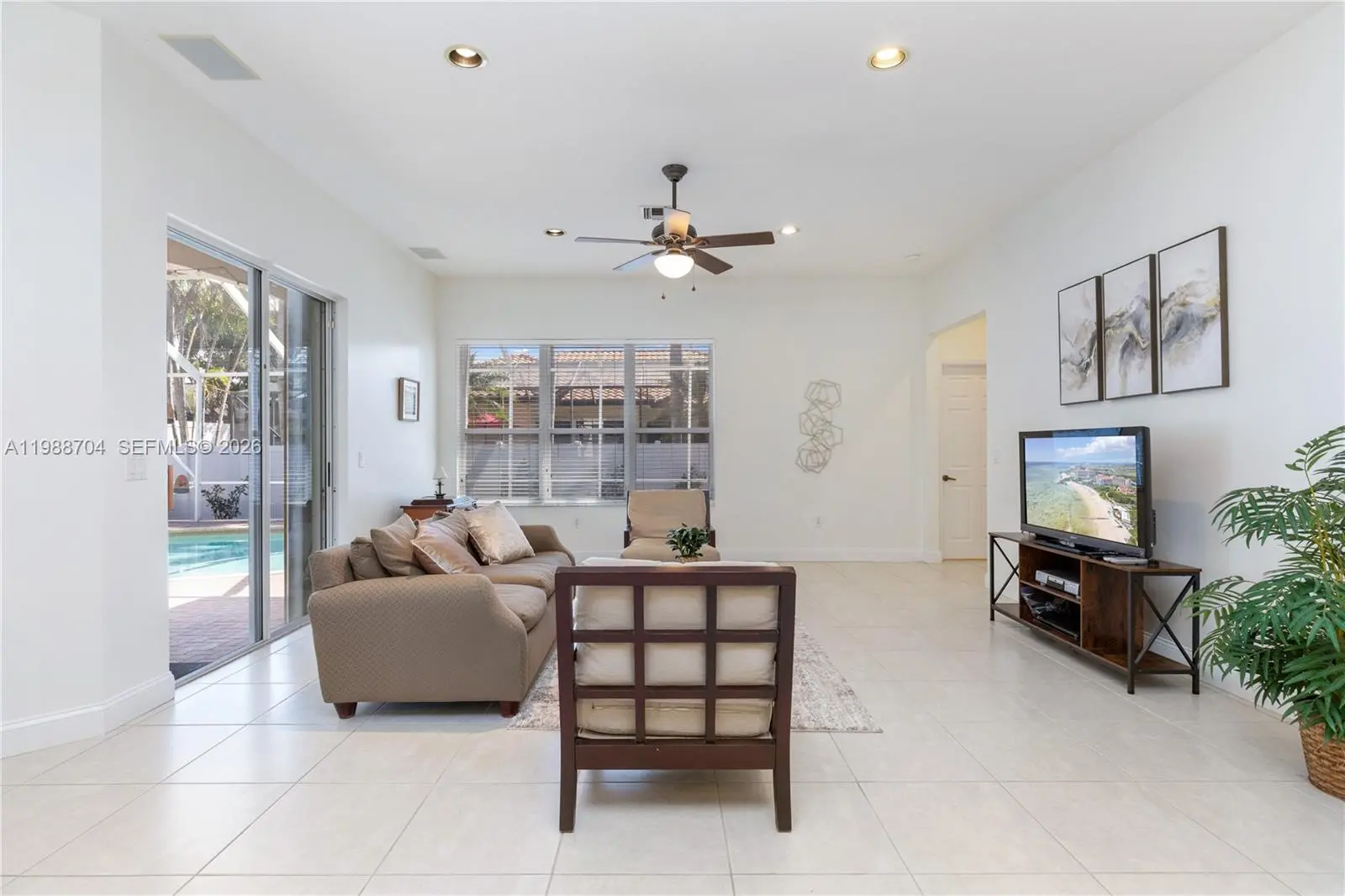 Step into luxury and effortless style in this beautifully updated one-story home, first time on the market in years. Soaring volume ceilings with recessed lights welcome all who enter, key upgrades include: brand-new flat tile roof (March 2026) and sleek stainless steel kitchen with quartz countertops (March 2026) set the stage, while refreshed baths shine with modern quartz finishes. The improvement list continues with a 2025 sprinkler system, accordion hurricane shutters (2023), water heater (2024), Goodman AC (2021) and 6' tall vinyl fence (2022) make this home move-in ready and worry-free. Wake up in your spacious master suite large enough for king-sized bed, a bay window sitting area and ensuite master bath behind double doors for complete split plan privacy. Entertain with ease in open yet thoughtfully defined living spaces, step outside to your screened patio, a private oasis perfect for relaxing or dining al fresco by the pool. With 4 bedrooms, 3 baths, a 3-car garage, and 3,927 q ft of total living area, this home offers the perfect blend of style, comfort and luxury. Located in the highly coveted gated Pasadena at Pembroke Shores community - complete with 24-hour manned security, top schools, parks, and easy access to I-75 - homes like this don’t come along often. Please request appointments via Show Assist with 24 hours notice. Seize this rare opportunity before it’s gone!