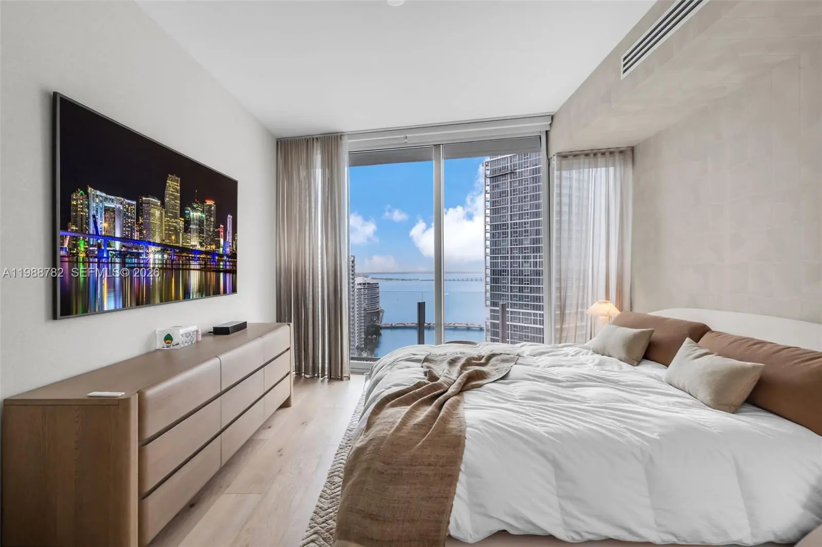 Turnkey luxury residence with breathtaking bay and skyline views. This beautifully furnished unit features floor-to-ceiling glass, a sleek open kitchen, and elegant designer interiors. Spacious primary suite with custom walk-in closet and spa-style bathroom. Experience world-class amenities in one of Miami’s most prestigious addresses.