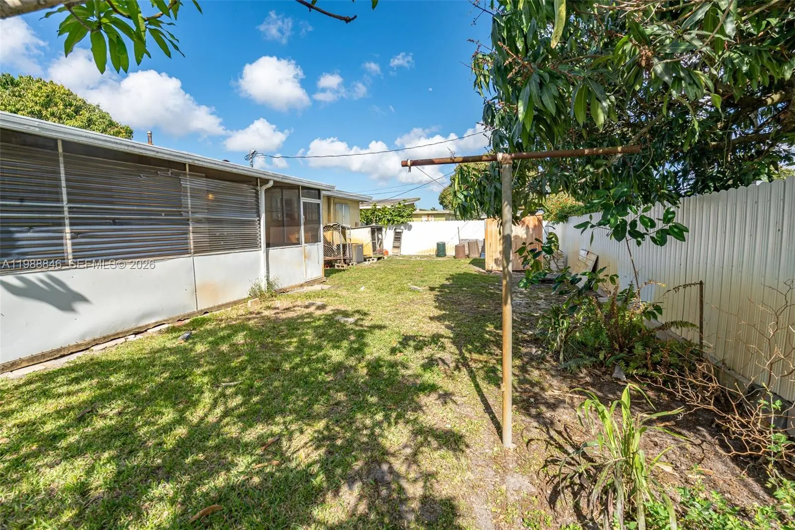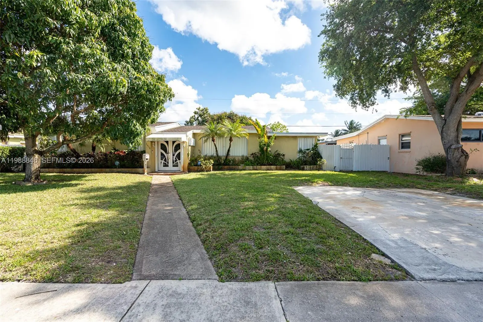Opportunity knocks in the heart of Miami Gardens! This 3-bedroom, 2-bath single-family home offers incredible potential and is ready for your personal touch. Featuring a desirable open floor plan, this home has tile & wood flooring in living areas and carpet plus original terrazzo floors in the bedrooms, giving you a solid canvas to make it your own. The kitchen has a gas stove, and a gas water heater adds efficiency. Enjoy a screened-in back patio, perfect for relaxing. Fruit trees grace the property, with a large, mature mango tree in the front yard for added charm. Hurricane shutters and a hurricane-rated front door provide peace of mind. Located close to Hard Rock Stadium, plus major highways, schools, shopping, and public transportation, this home offers great convenience and long-term value. Whether you're an investor, first-time buyer, or visionary homeowner, this is your chance to unlock potential. All buyers must preview the property in person before submitting an offer. Offers without an in-person showing will not be considered. Don’t miss out—schedule your showing today!