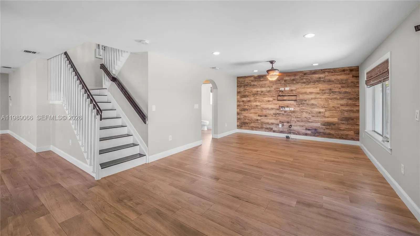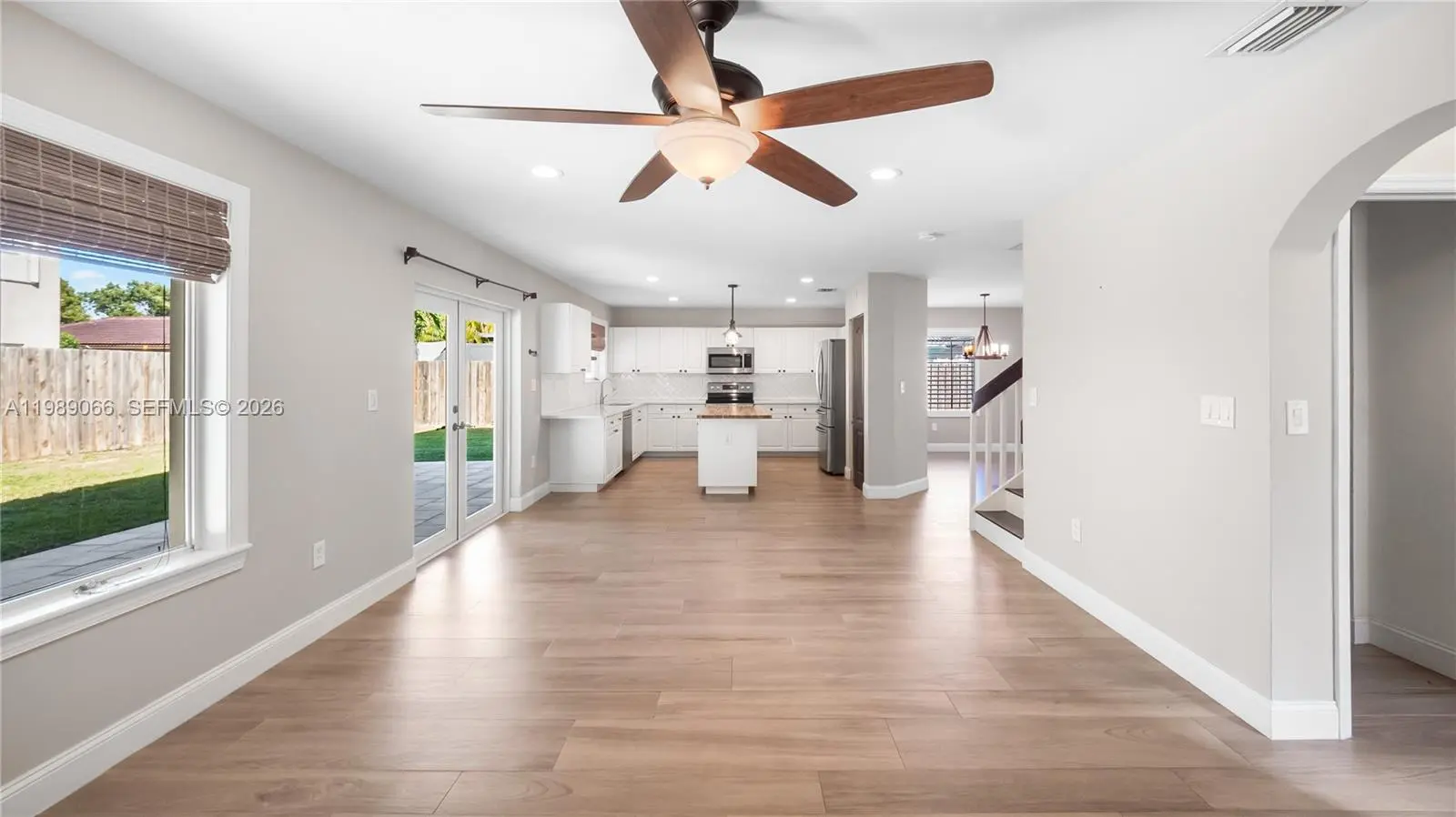 This immaculate 4-bed/2-bath/1-car home is one of the cleanest on the market. Meticulously maintained with numerous upgrades completed when the owners moved in. Wood-look ceramic tile flows throughout the downstairs, and laminate wood upstairs. Each bedroom offers generous space and excellent closets. The oversized primary suite includes a sitting area, room for a king bed, a large walk-in closet, and an additional hall closet leading to the master bath. The covered patio spans the length of the house, and a side parking pad with double gates and a wood fence enclosure provides RV/boat parking. An impact French door opens to the covered patio. The kitchen features high-end stainless-steel appliances, and a washer/dryer is conveniently located across from the half bath off the family room. Move-in ready.
