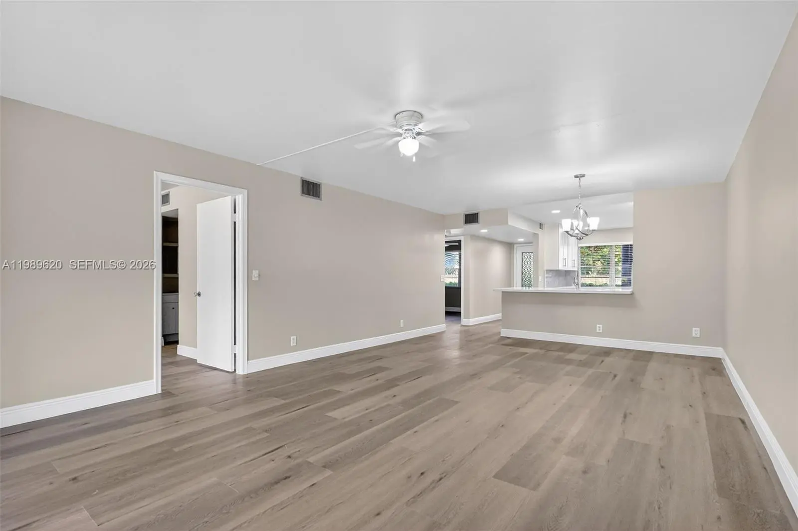 Fully renovated ground-floor condo offers a beautifully designed living space with two bedrooms and two bathrooms. The condo features an amazing open-concept kitchen with stunning upgrades, including elegant granite countertops, new cabinetry, and new top-of-the-line stainless steel appliances, creating a luxurious and modern feel. Both bathrooms have been tastefully remodeled, and the waterproof vinyl flooring throughout adds both style and durability throughout the unit. The spacious primary bedroom includes a walk-in closet, while the convenience of an in-unit washer and dryer enhances everyday living. Step outside to an patio that offers a sense of privacy and tranquility, while still allowing for outdoor access to the satlite pool—perfect for relaxing in peace. Located in one of the most exclusive 55+ communities in Pembroke Pines, this condo provides a true resort-style lifestyle. Residents enjoy access to a million-dollar clubhouse, fitness center, movie theater, transportation services, free golf, an on-site pharmacy and café, as well as 24-hour security patrol, and so much more. Owner financing available! $811 total monthly association fee.
