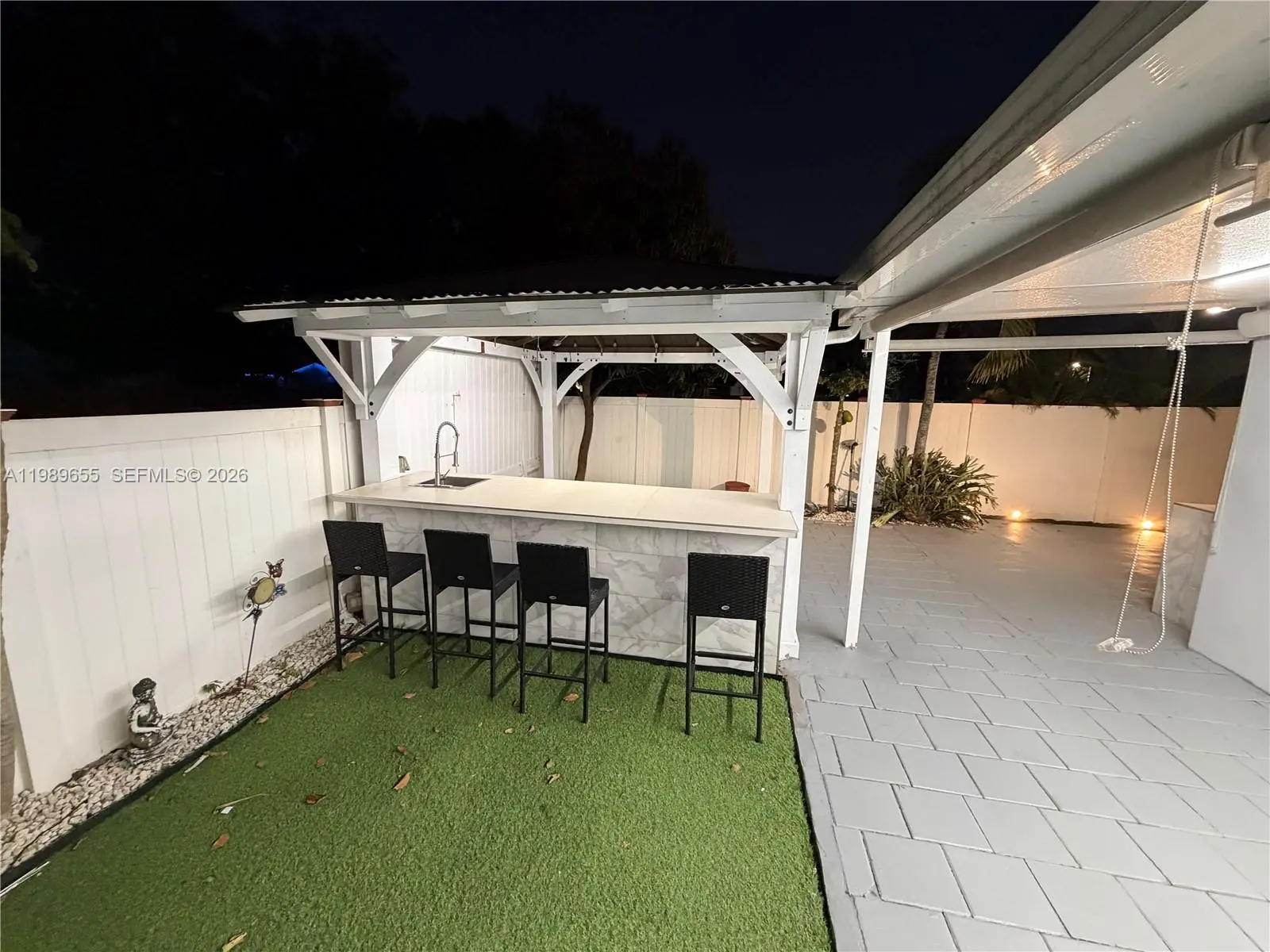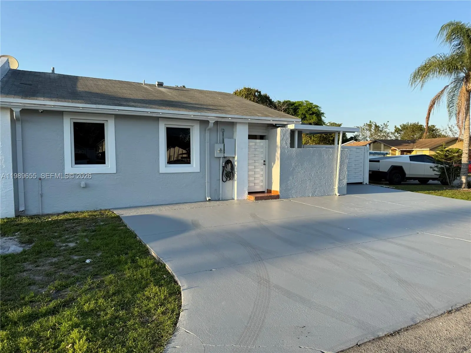 Beautiful Corner Townhouse 3 bedroom 2 and 1/2 bathroom. Large drive way can park many cars plus fence in driveway on the side for boat or RV. Updated kitchen and Bathrooms. Large walk in closet. Porcelain tile floors. All impact windows. Outdoor Kitchen and open bar. Artificial turf on the side. Led lights around the house.