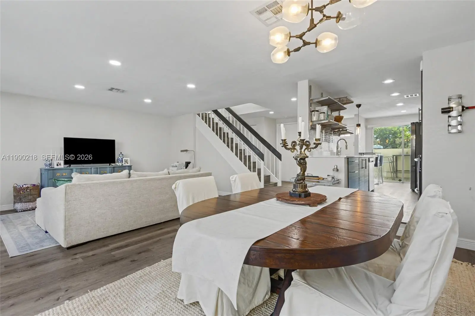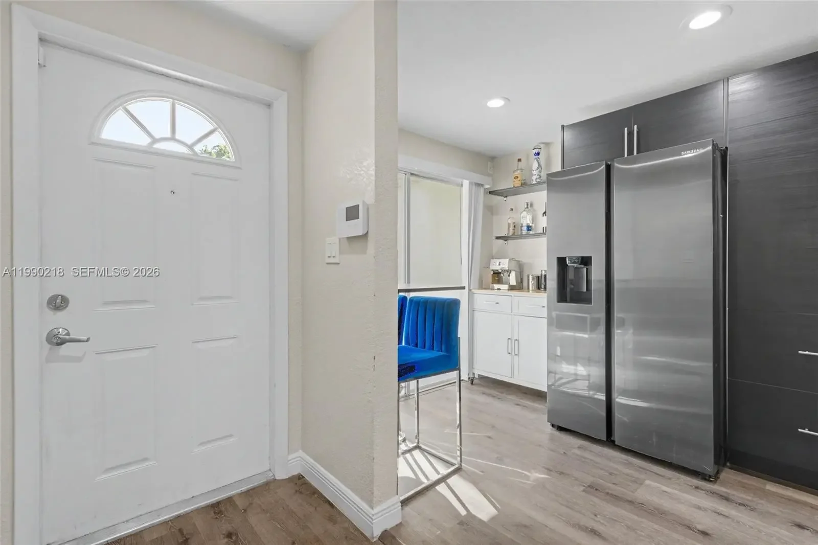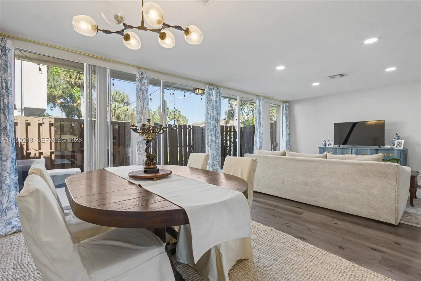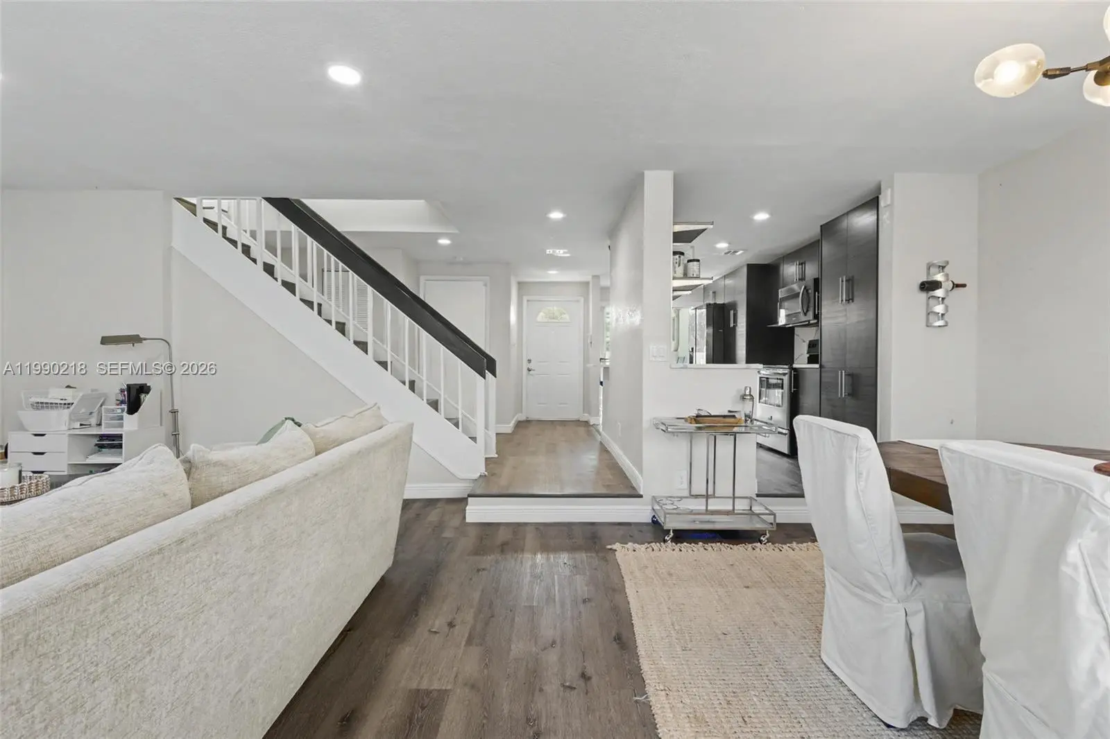 ASSESSMENT PAID IN FULL! This beautifully remodeled townhouse has been completely updated inside and out, including new roof and exterior walls. The 40 year inspection was completed and there is no special assessment. 2.5 BATHS. The interior features two spacious suites with impact windows/doors and a large open balcony. Walk-in closets. New waterproof vinyl flooring, modern lighting, and a stunning redesigned kitchen with sleek cabinetry, quartz counters & backsplash, upgraded smoked stainless appliances. The expansive living/dining area opens to a fenced patio through multiple sliding doors. Enjoy a charming front garden with seating, a laundry room with new washer/dryer, and a 1-car garage plus extra parking. Association allows converting the garage into an additional bedroom. Unit is located next to the pool.