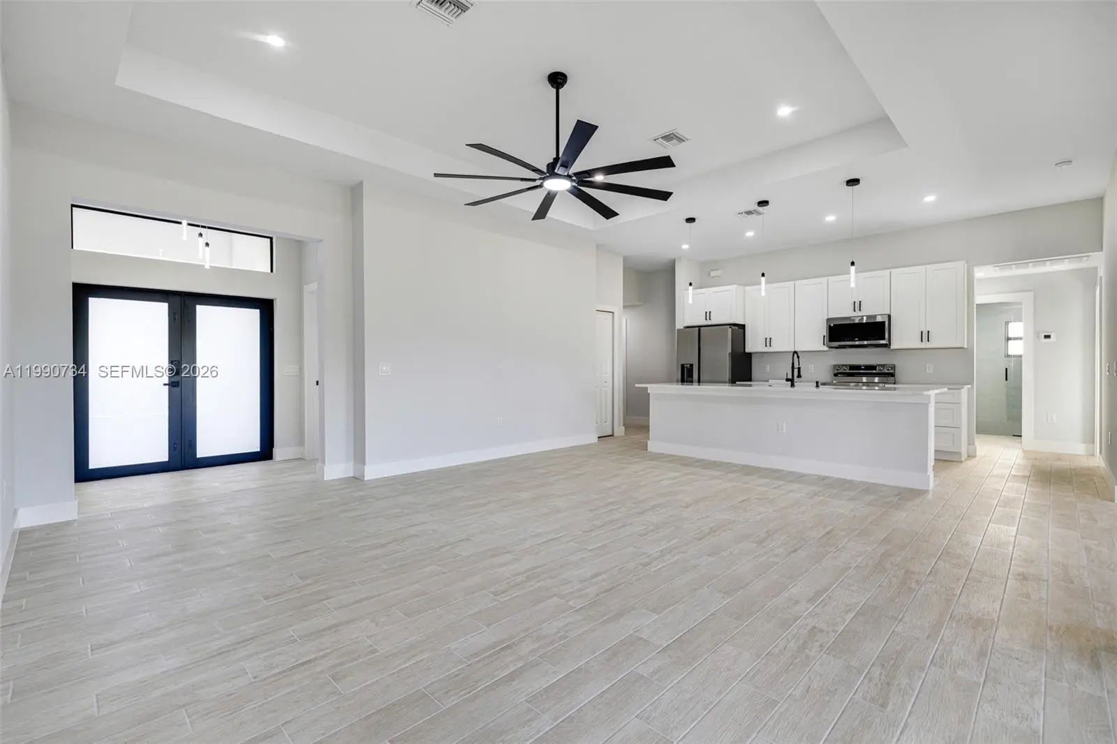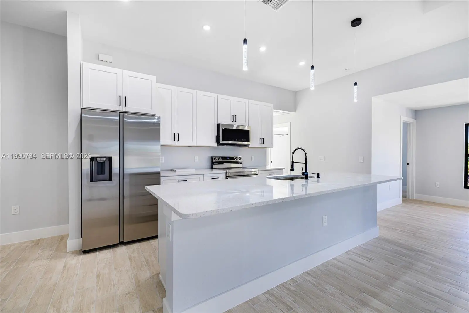NEW CONSTRUCTION. RENT TO OWN PROGRAM AVAILABLE. Elegant open floor plan appointed with high ceilings, wood-like tile throughout, modern finishes, kitchen island, his and hers walk-in closets, and an expansive covered terrace. Upgrades include high-impact windows and doors, freestanding soaking tub, stainless steel appliances, quartz counter tops, soft-close cabinets, remote-controlled ceiling fans, and outside kitchen hookups.