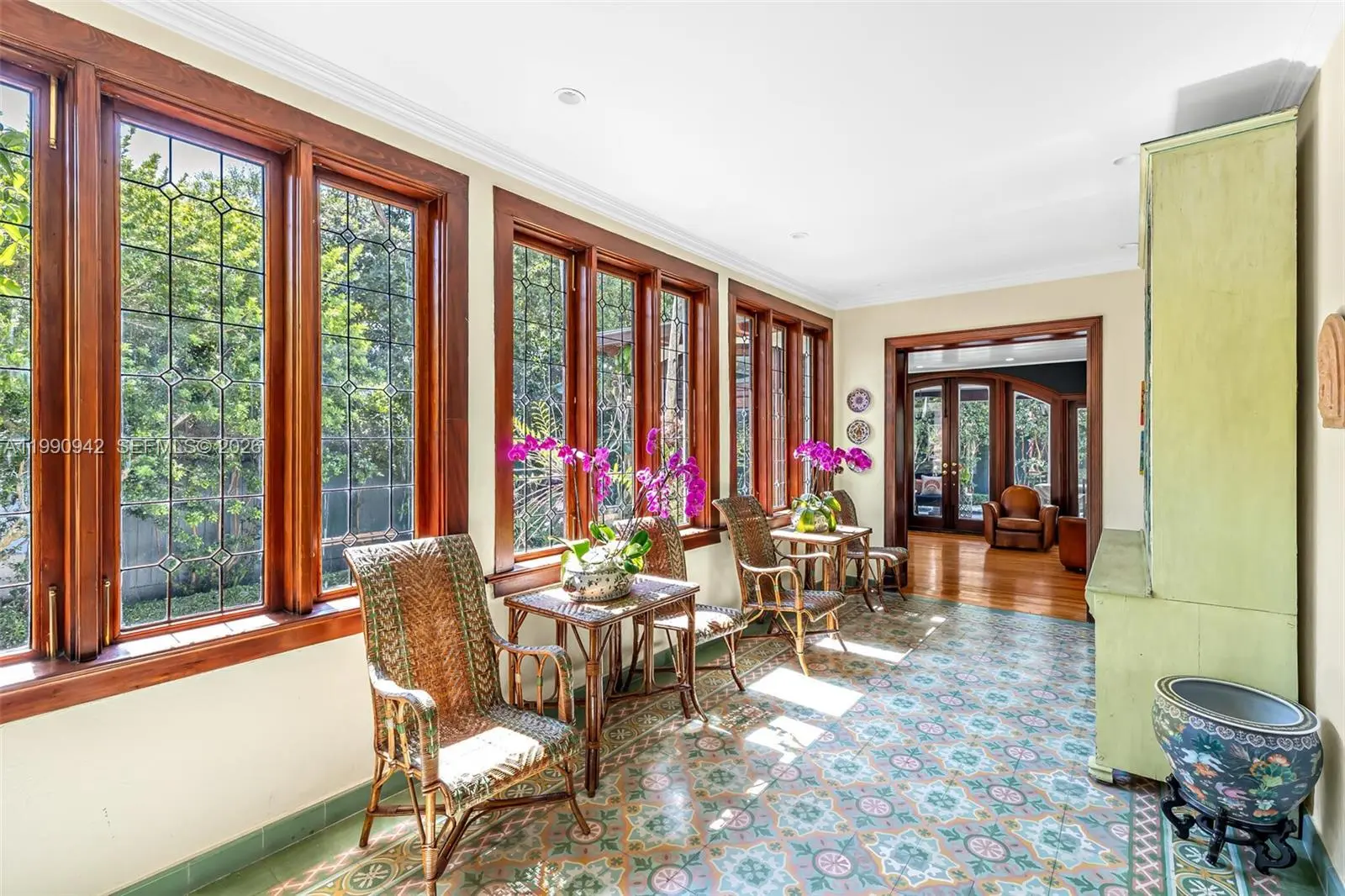 ***4,558 SF per appraisal **** A truly extraordinary family home in Coconut Grove's outstanding Moorings community — one of only two Miami neighborhoods with private roads and a 24-hour manned guard gate. Abundant common areas, including the iconic 100-year-old Kapok tree at the entrance, reflect the unique and historic character of this community. Set atop the Coconut Grove Bluff at approximately 18 feet above sea level, the home features timeless Mediterranean architecture, lush landscaping, and exceptional curb appeal. Interiors provide warm, natural light, beautifully designed windows, original Cuban tile floors, and elegant architectural details throughout. Sun-filled sitting rooms overlook the gardens, creating bright living spaces great for both family living and entertaining. .