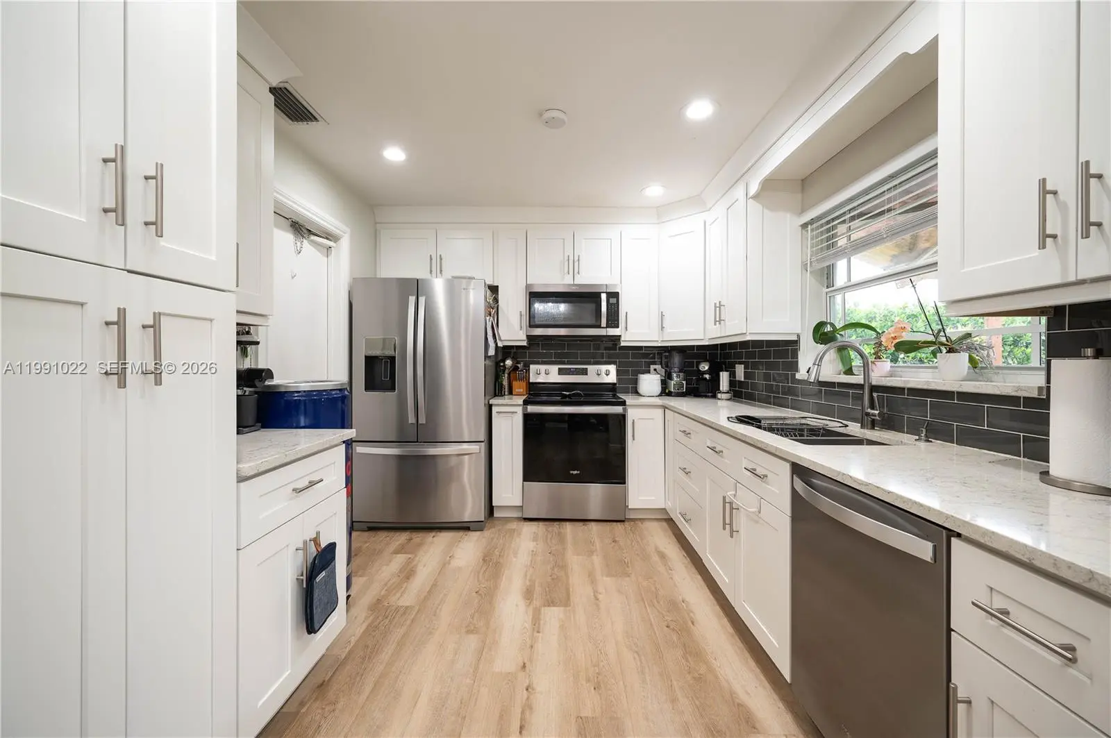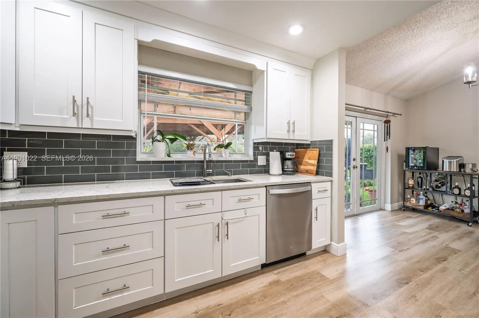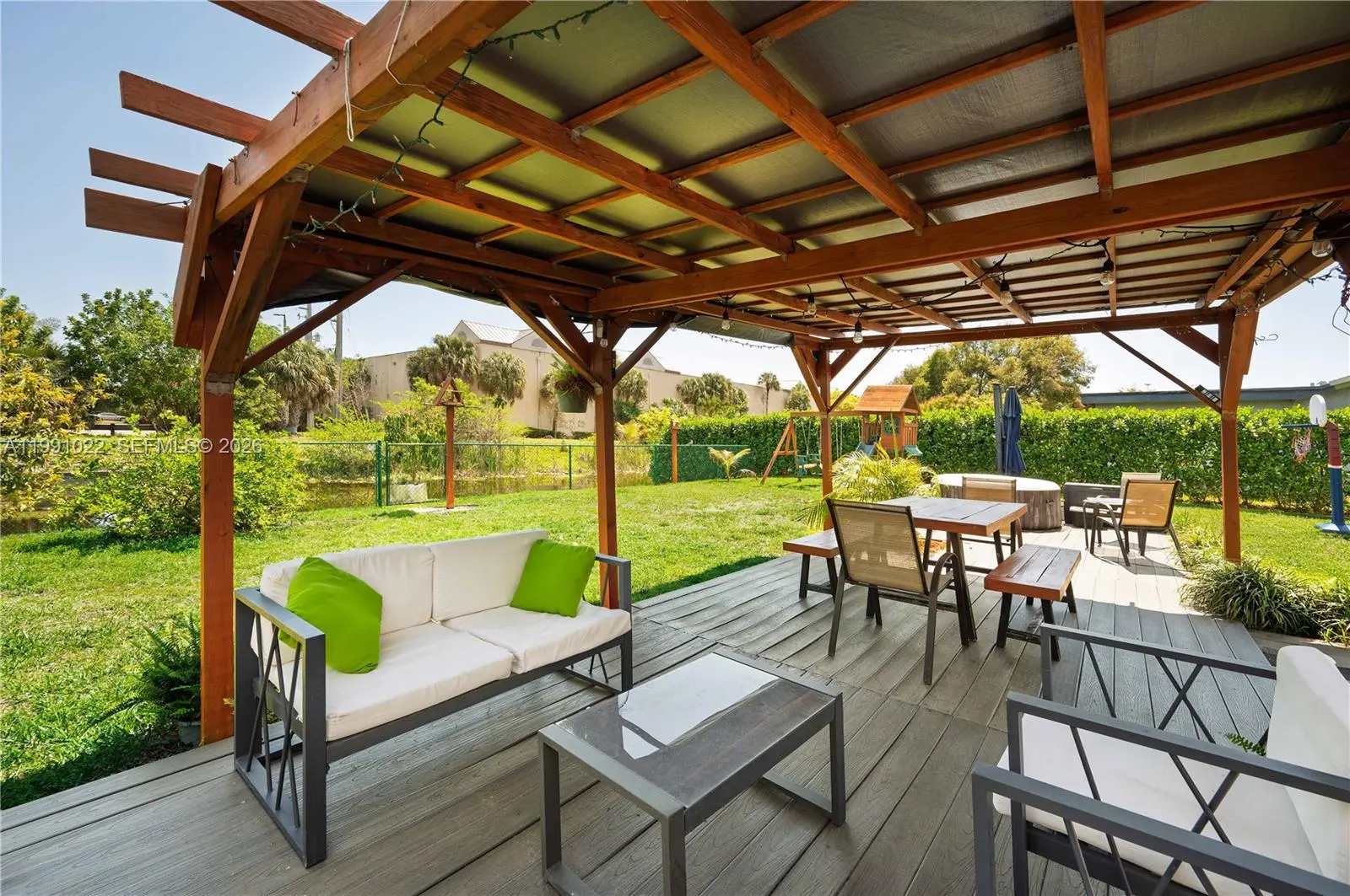 Waterfront Living at Its Finest! This truly exceptional property sits on an 8,000 sq. ft. lot overlooking a serene canal, where you can enjoy views of ducks, exotic birds, fish, and turtles right from your backyard. The home was completely renovated seven years ago, beginning with a modernized kitchen featuring updated appliances. Both bathrooms have also been beautifully renovated, and wood laminate flooring runs throughout the property. The roof was replaced on October 27, 2025, and the home is equipped with impact doors for added security and peace of mind. Step outside to a fully permitted, covered pergola that comfortably accommodates up to 10 guests—perfect for entertaining. The home also features high ceilings in the main living and dining areas, creating an open and airy feel. Additional highlights include a sprinkler system on both sides of the home that utilizes canal water, as well as mature fruit trees on the property. This is a rare opportunity to own a move-in-ready waterfront home with both charm and functionality.