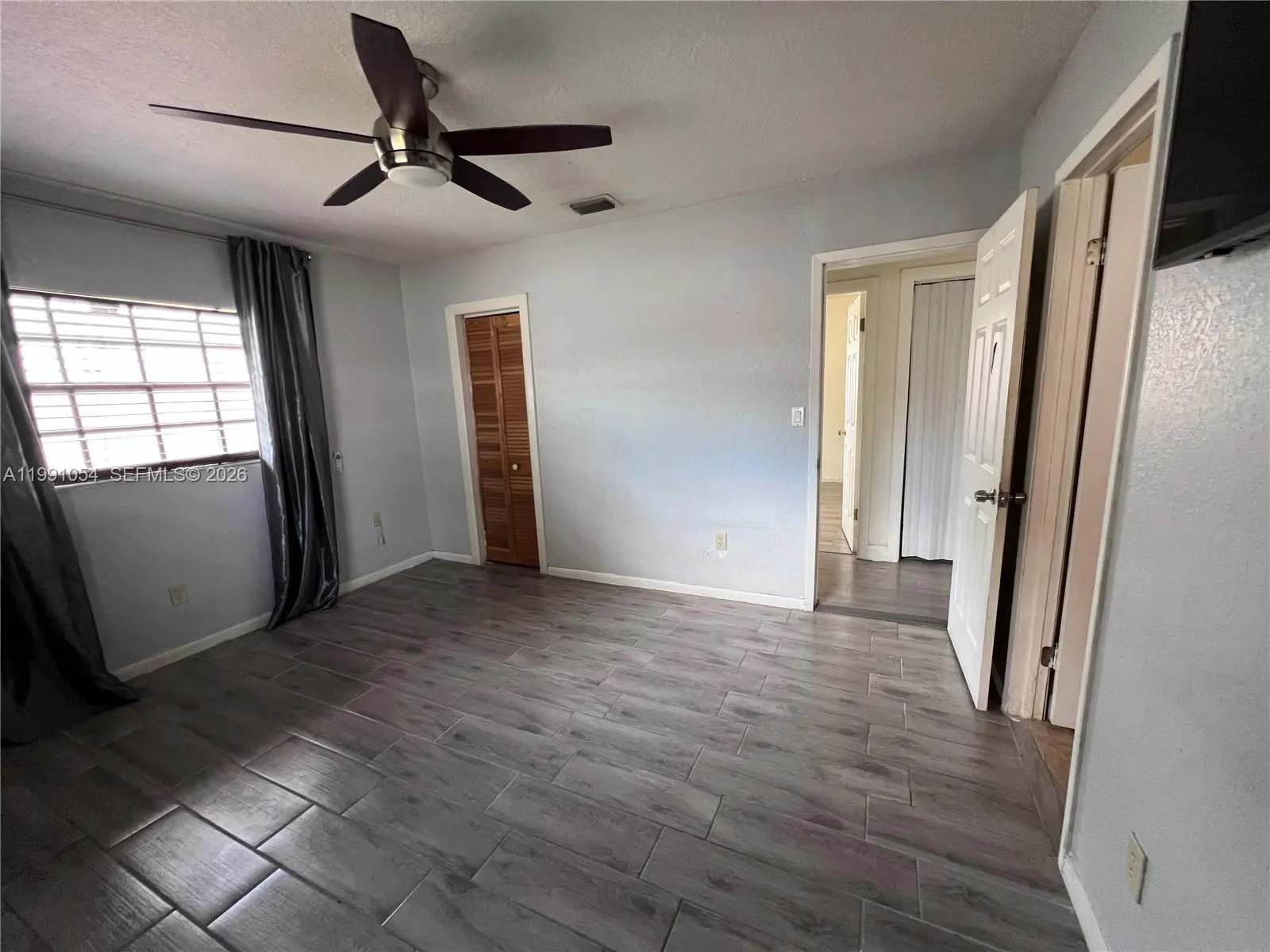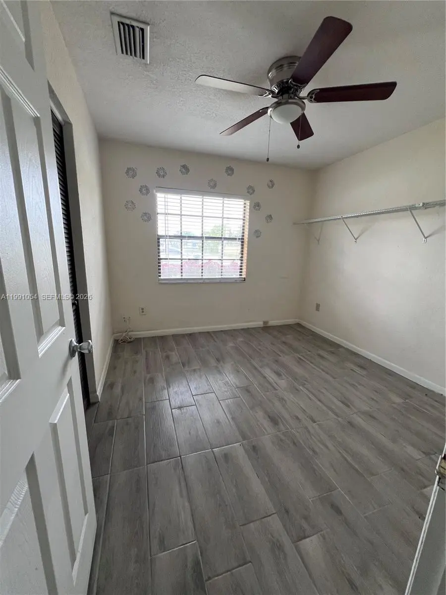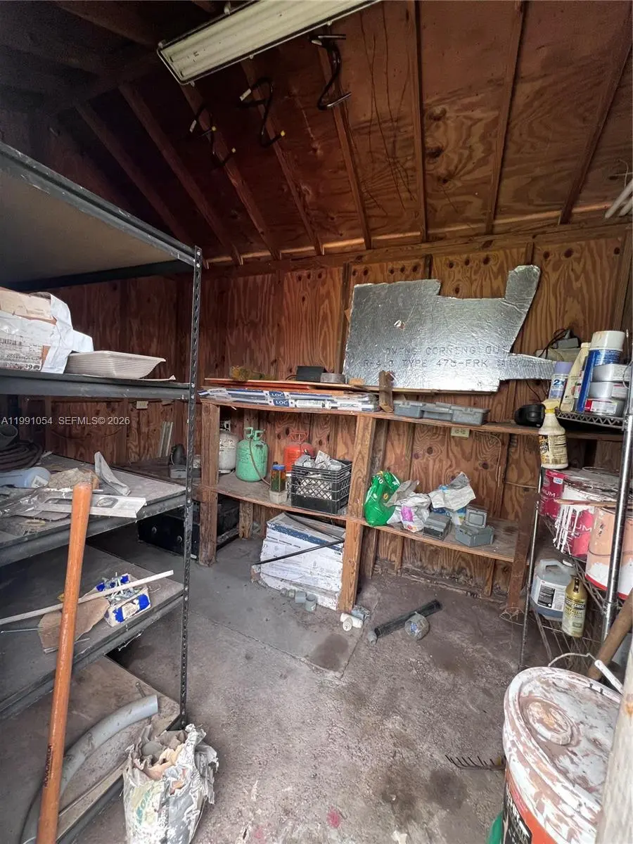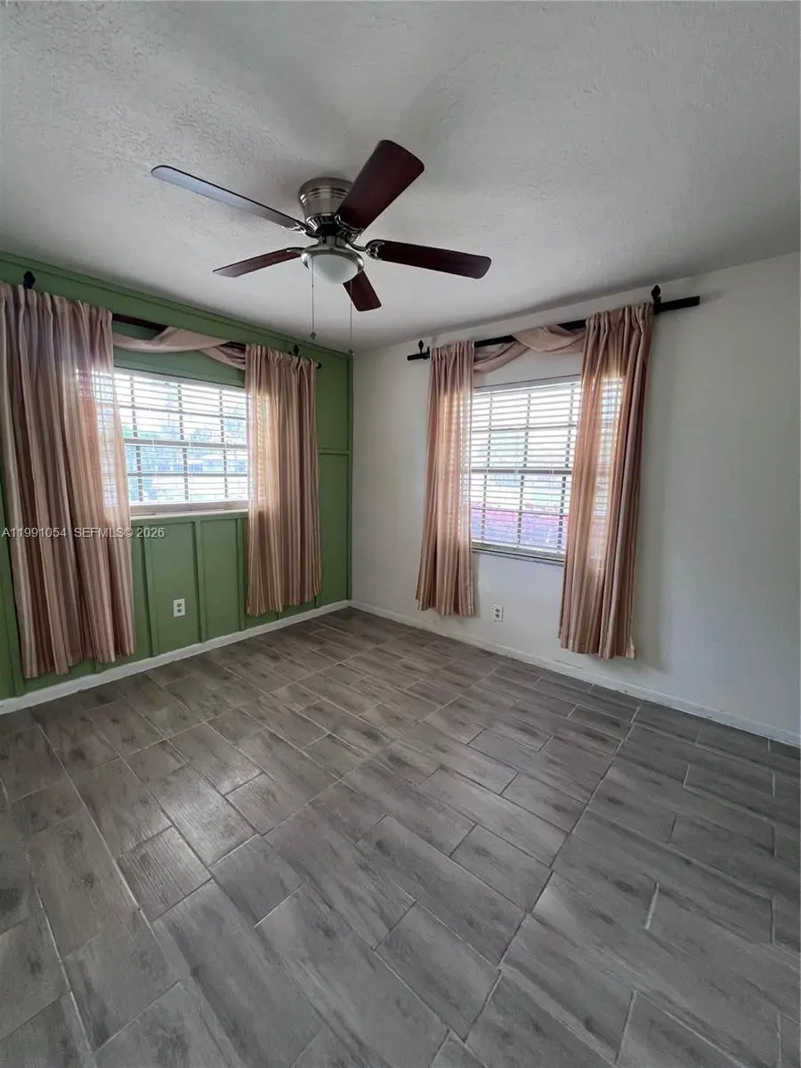 Welcome to this charming 3-bedroom, 2-bath home nestled in a quiet Miami neighborhood! This well-maintained property features beautiful wood flooring throughout and a thoughtfully converted garage that serves as an additional bedroom with its own private entrance, perfect for guests, a home office, or easily transformed into in-law quarters. This room also has its own a/c unit separate from the main house. The kitchen is equipped with stainless steel appliances, sleek granite countertops, and plenty of space for cooking and entertaining. Step outside to a covered patio ideal for relaxing or hosting gatherings, all overlooking a spacious, fully fenced yard that offers privacy and room to enjoy. The backyard also includes a large shed for extra storage, while the lush, well-manicured lawn is kept vibrant year-round with an automatic sprinkler system. Accordion shutters provide added convenience and peace of mind. This move-in-ready home has everything you need, comfort, flexibility, and outdoor space, ready for a new family to make it their own!