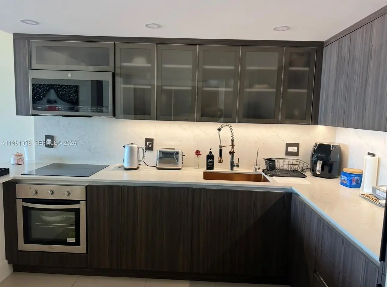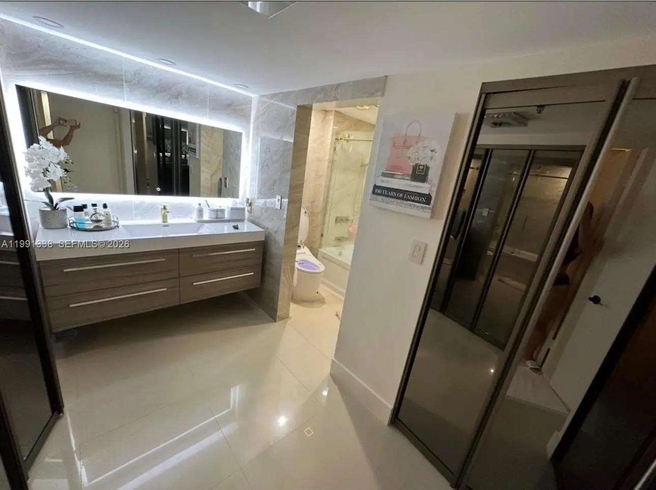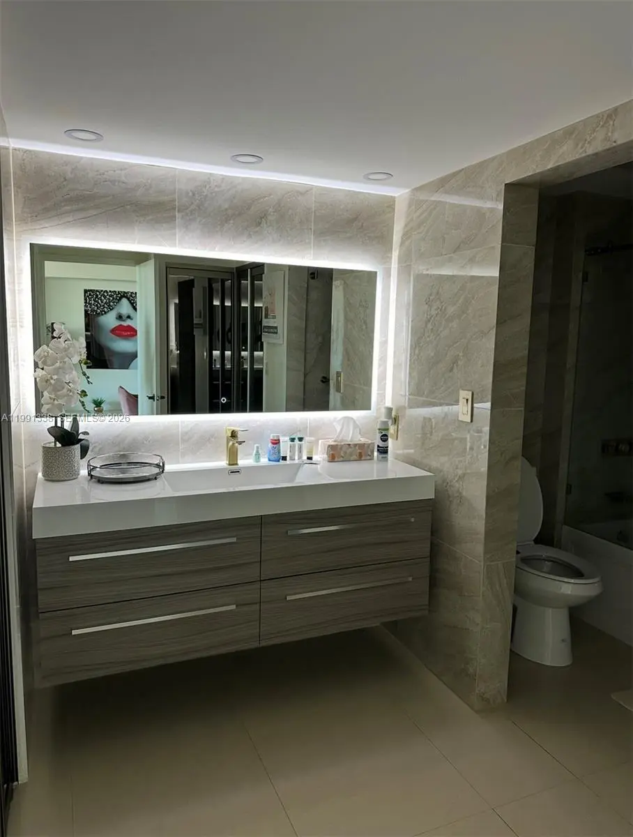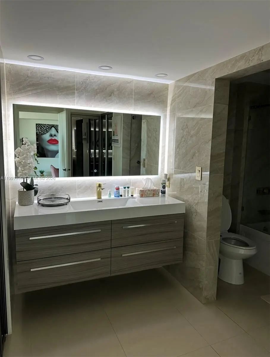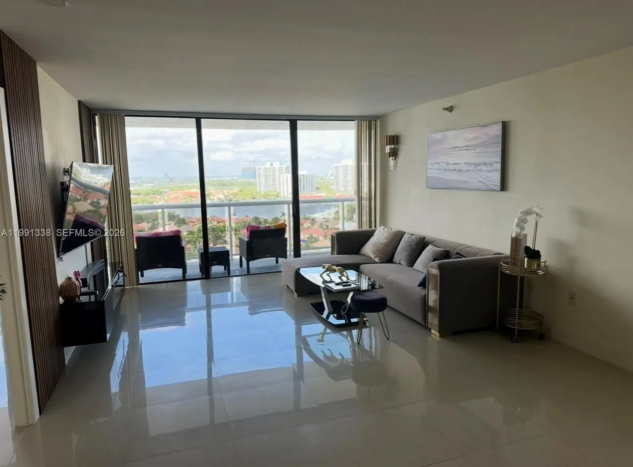 Luxury Waterfront Condo. Fully Renovated Stunning 2-bedroom residence located on the 17th floor with breathtaking panoramic water views, sunsets, and skyline. This modern, fully renovated condo features high-end finishes and a designer-style interior, thoughtfully upgraded by the owner. Open-concept living space with floor-to-ceiling sliding doors.Custom made kitchen with built-in appliances. Premium cabinetry with soft-close systems Elegant bronze mirror accents and luxury details throughout. Spacious bedrooms and beautifully finished bathrooms. Large private balcony with incredible views of the water, city, and sunsets.Enjoy resort-style living in the heart of Aventura, just minutes from Aventura Mall, beaches, restaurants, and top locations. Move-in ready. Unmatched views