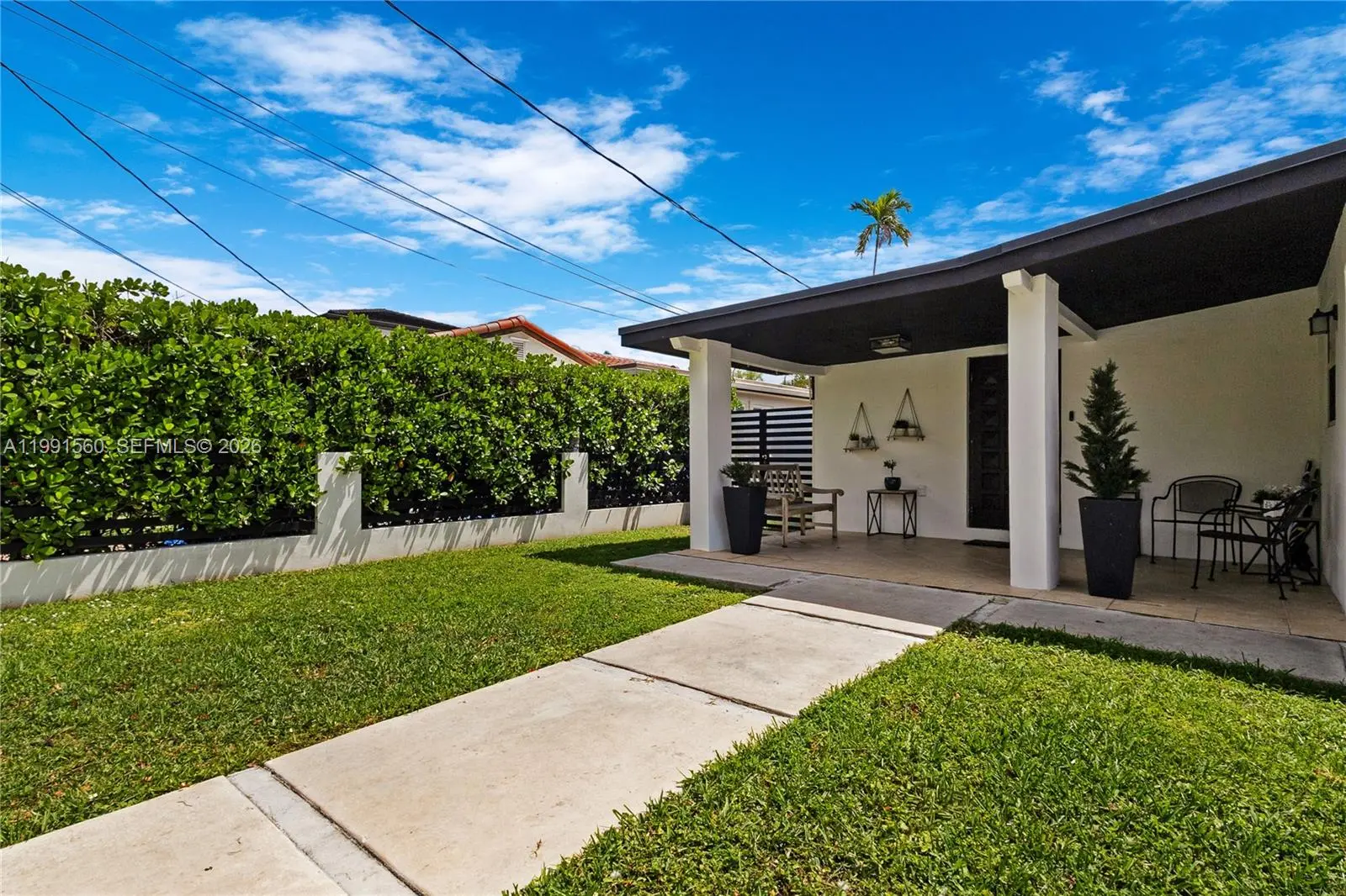 WELCOME to the Eugenia Groves Park neighborhood located less than two blocks from Coral Gables. This charming 3 Bedroom 2 Bathroom home is ready to move into! Newer 2 Car Driveway already setup with EV/Tesla charger. Large yard ideal for relaxing & entertaining. Roof is from 2020, lovely kitchen/dining layout perfect for family dinners, covered terrace, separate laundry & still plenty of space in backyard! Home features ENORMOUS primary bedroom with walk-in closet & massive shower! Second Bedroom also has walk in closet. Zoned elementary school is Coral Gables Preparatory K-8, Ponce Middle School & Coral Gables High School. NO HOA!!