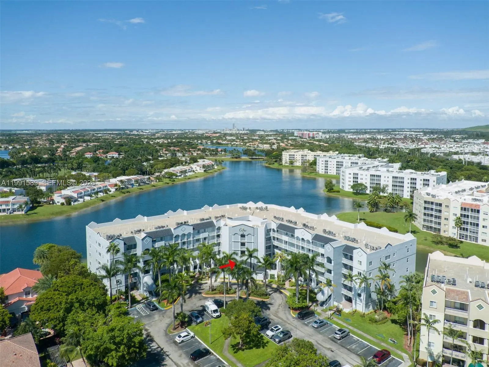 Resort Style Living in the Heart of Doral. A secure gated community offering an unmatched lifestyle with incredible amenities: Tennis, Basketball, soccer and baseball fields. Multiple pools, gym and party room. Our own on-site restaurant "Craft". This FURNISHED rare 3 bedroom , 2 and 1/2 bathroom model is the largest corner unit in the building. The extensive kitchen opens into a large family area, perfect for entertaining or relaxed everyday living. Step out onto your private balcony with serene lake views, providing the perfect backdrop for morning coffee or evening relaxation. Washer and dryer on unit. One assigned parking and another car can be park in guest.
