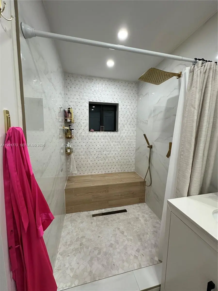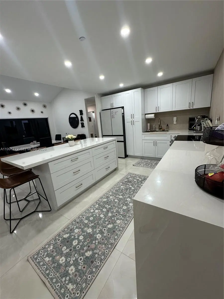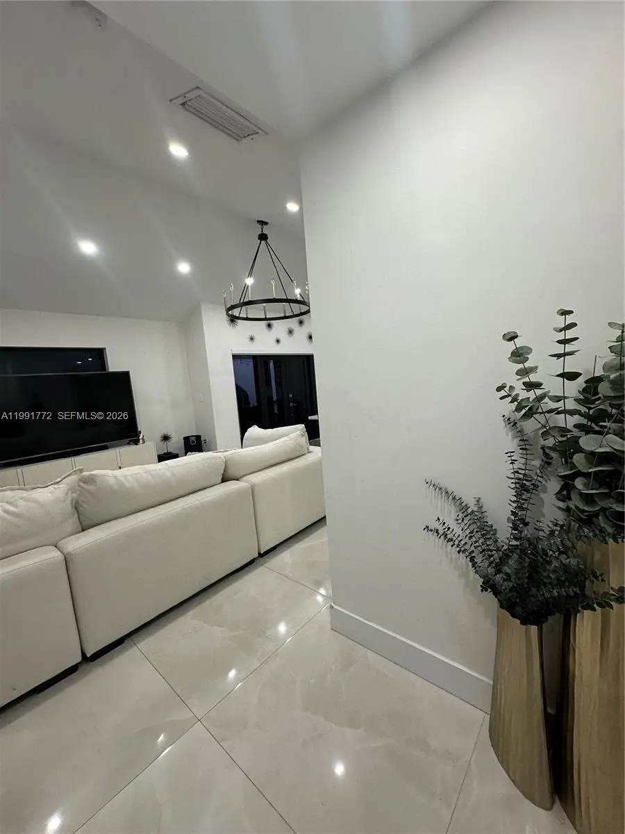 Stunning fully remodeled 3BR/2BA home in West Kendall. This move-in ready property features modern tile flooring, renovated kitchen and baths, and complete impact windows and doors, including garage door. Enjoy a private backyard with artificial turf and pergola, ideal for entertaining. Exterior security camera system installed. New roof and A/C (2022). One car garage with laundry and storage cabinets.