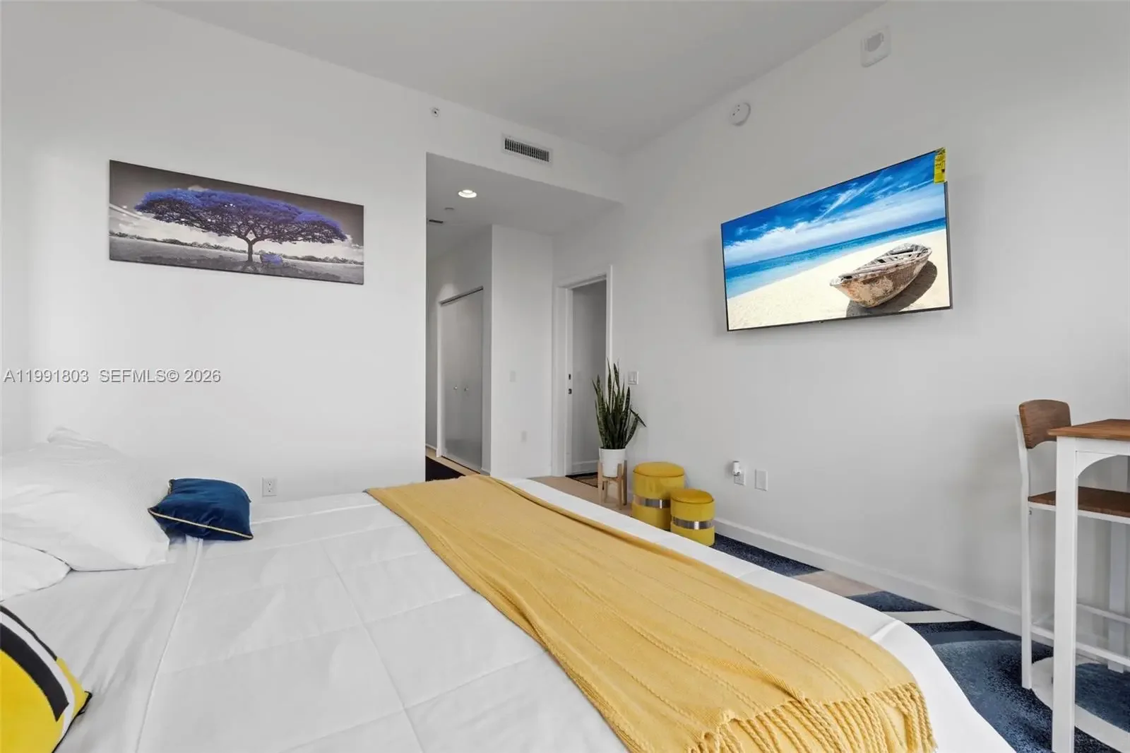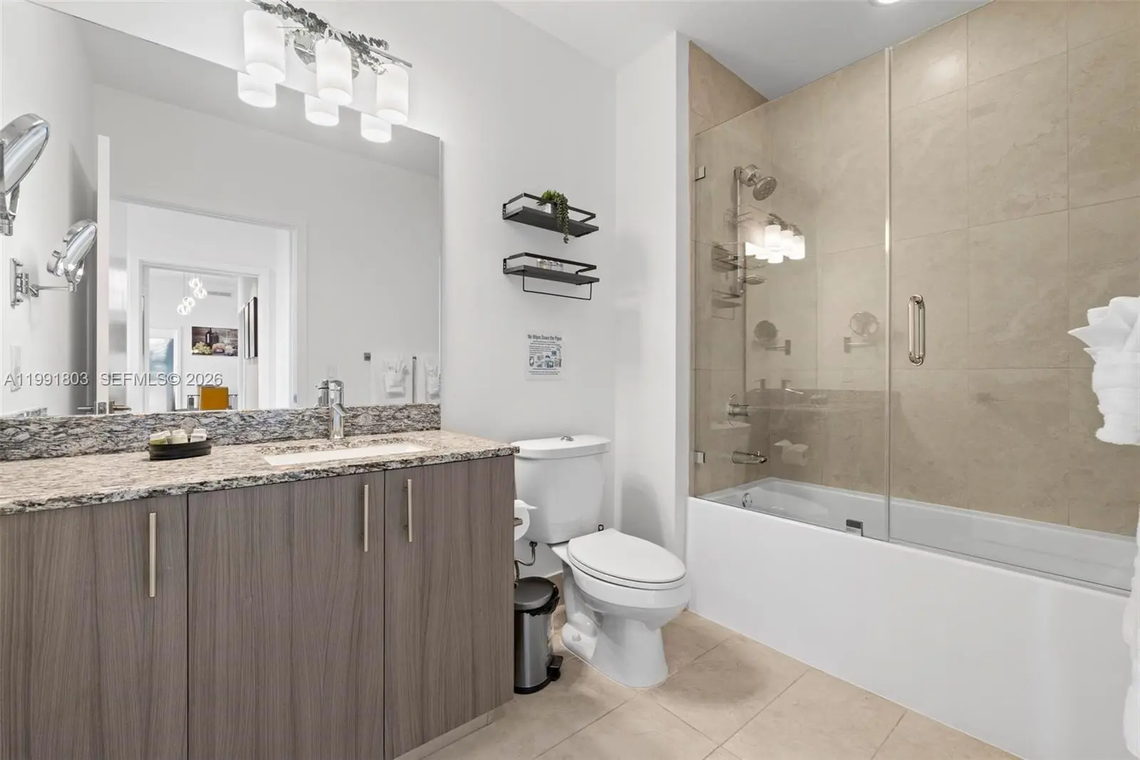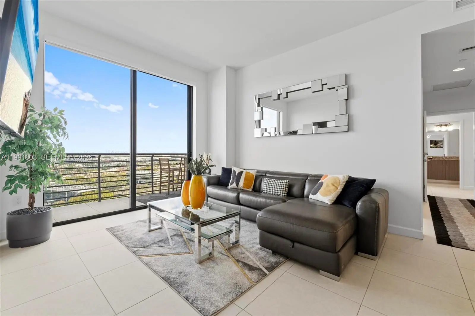 English: Modern 2-bedroom, 2-bathroom penthouse at 5350 Park. This unique unit functions as an efficiency thanks to its dual-entry "lock-out" design, allowing one suite to be used independently. Features include floor-to-ceiling impact windows, a private balcony with city views, and high-end finishes. Includes assigned parking in a secure covered garage plus 24/7 valet service. Located in the heart of Downtown Doral, steps from top-rated schools and dining.