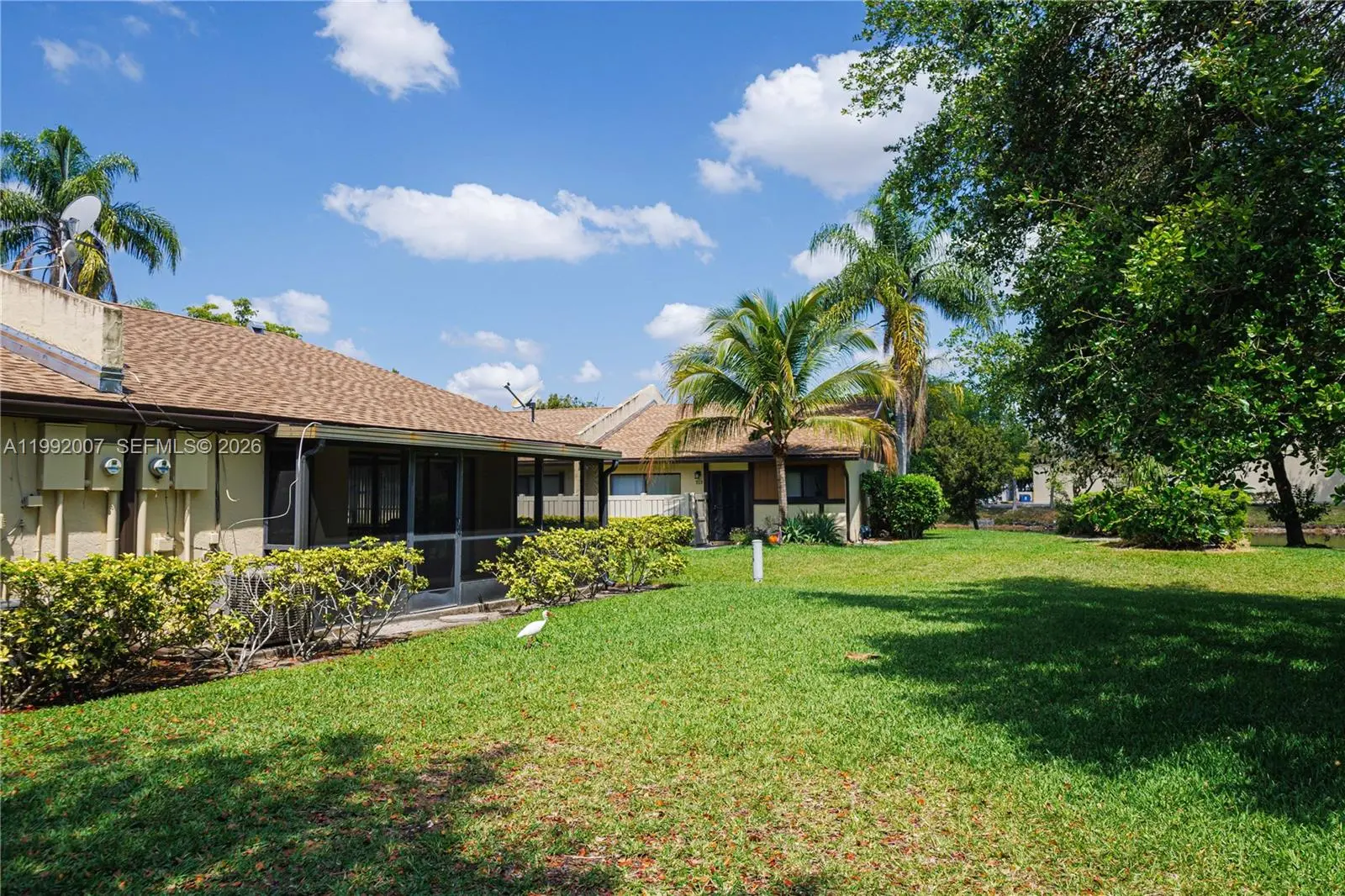 2BR/2BA corner unit with peaceful lake view. This light-filled home offers a desirable split-bedroom layout, private entry, and a screened patio overlooking the water. Perfect for relaxing or entertaining. Corner location provides added privacy and extra green space. Property needs some TLC, making it a great opportunity for investors or buyers looking to customize and add value. Has NEW ROOF! Conveniently located near shopping, dining, and major roadways.